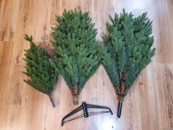 Beim Aufbau des künstlichen Weihnachtsbaumes ist es am wichtigsten, einen geeigneten Standort mit viel Platz zu wählen. Jeder Weihnachtsbaum, den Sie von uns kaufen, ist demontiert und im Karton verpackt, damit er so wenig Platz wie möglich einnimmt. Kontrollieren Sie sofort nach dem Auspacken den Packungsinhalt. Künstliche Weihnachtsbäume in den Größen bis zu 150 cm bestehen aus einem Teil. Weihnachtsbäume in den Größen ab 180 cm bestehen aus 3 Teilen. Ein Baumständer ist ebenfalls Bestandteil der Lieferung. Ob Sie einen Metall- oder einen Kunststoff-Ständer erhalten, hängt vom bestellten Weihnachtsbaum-Modell ab. Der Metall-Ständer wird zusammen mit Schrauben zur Befestigung des Baumstamms versendet. Der Kunststoff-Ständer besteht je nach Baumgröße in demontiertem Zustand aus 3 oder 4 Füßen.