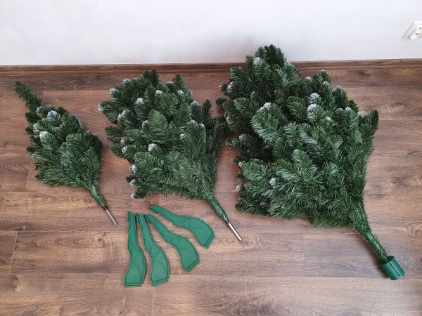 der künstliche Weihnachtsbaum besteht aus drei Teilen