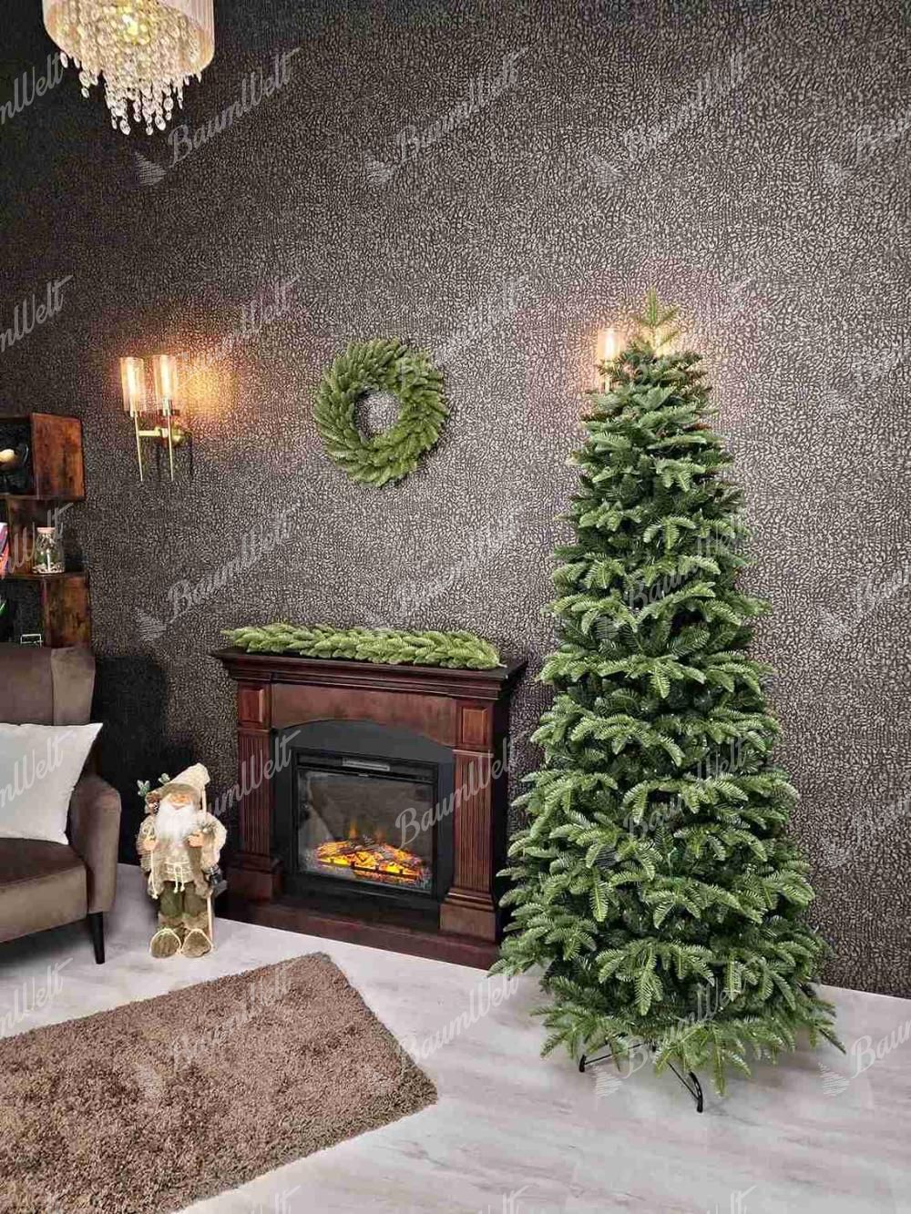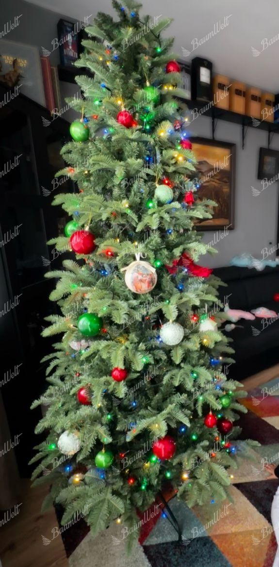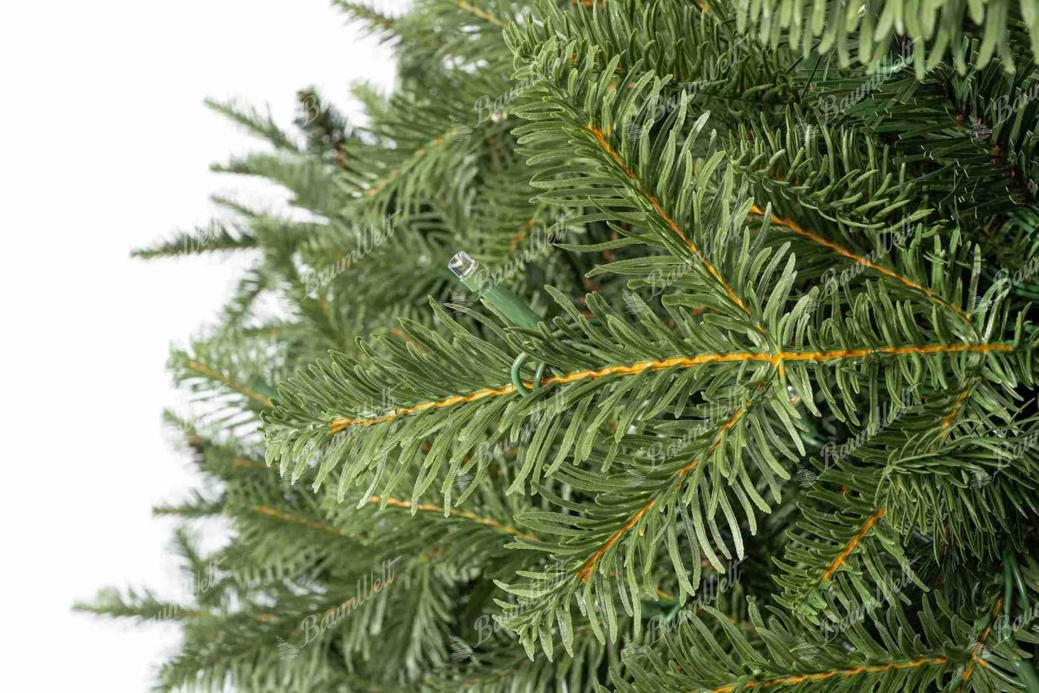 Die Kombination aus 3D-Tannennadeln an den Enden der Zweige und klassischen PVC-Nadeln im Inneren des Baumes verleiht ihm ein realistisches Aussehen, sodass er von einem lebenden Baum nicht zu unterscheiden ist.