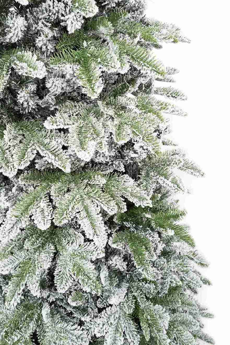 Die 3D Iberische Tanne schneebedeckt ist ein moderner Weihnachtsbaum mit einem schmalen Design und eine Neuheit für die Saison 2024. Das originelle Aussehen des Baumes entsteht durch die zarten und unregelmäßig schneebedeckten Zweige und imitiert so einen frisch verschneiten Baum in der Natur. Das Innere des Baums wird durch schneebedeckte klassische PVC-Zweige ergänzt, die ihm ein dichtes Aussehen verleihen.