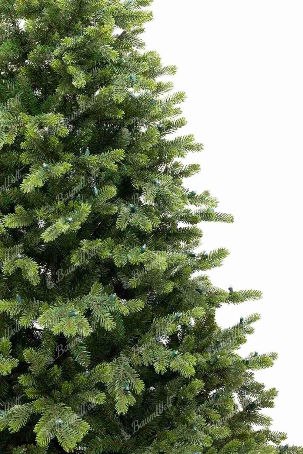 Seine dichten, natürlich grünen Nadeln imitieren perfekt einen echten Baum. Die Kombination aus realistischen 3D- und PVC-Zweigen erzeugt wiederum einen dichten Eindruck. Dadurch wirkt der Baum authentisch und ist von einem echten Baum im Wald nicht zu unterscheiden.