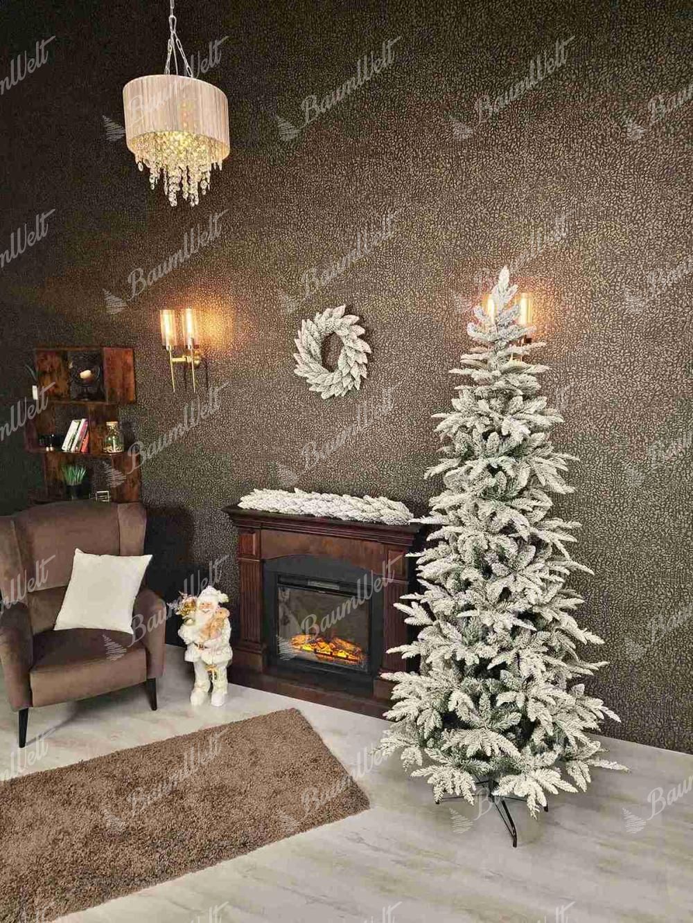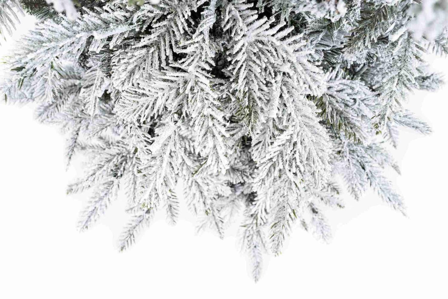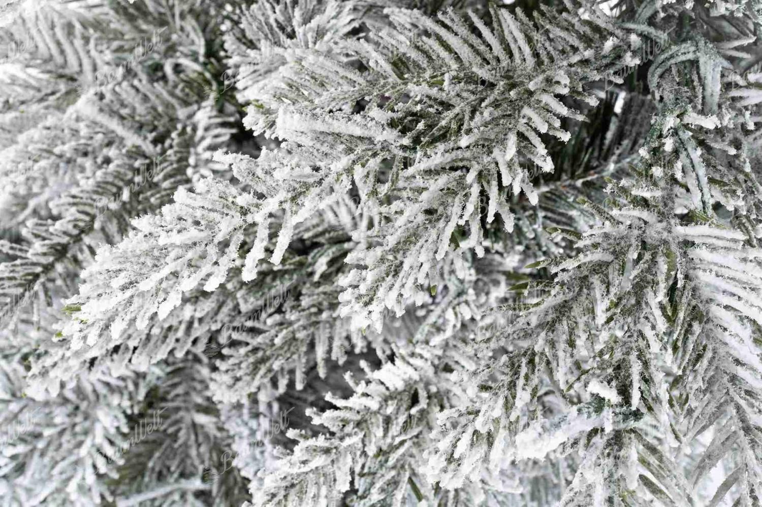Die Neuigkeit für die Saison 2024 ist der 3D-Weiß-Tanne-Weihnachtsbaum, der mit seinen dicht verschneiten Tannenzweigen originell ist. Das realistische verschneite Aussehen des Baumes schafft eine magische, verschneite Atmosphäre in Ihrem Zuhause und sein schmales Design macht ihn ideal für kleinere Räume.