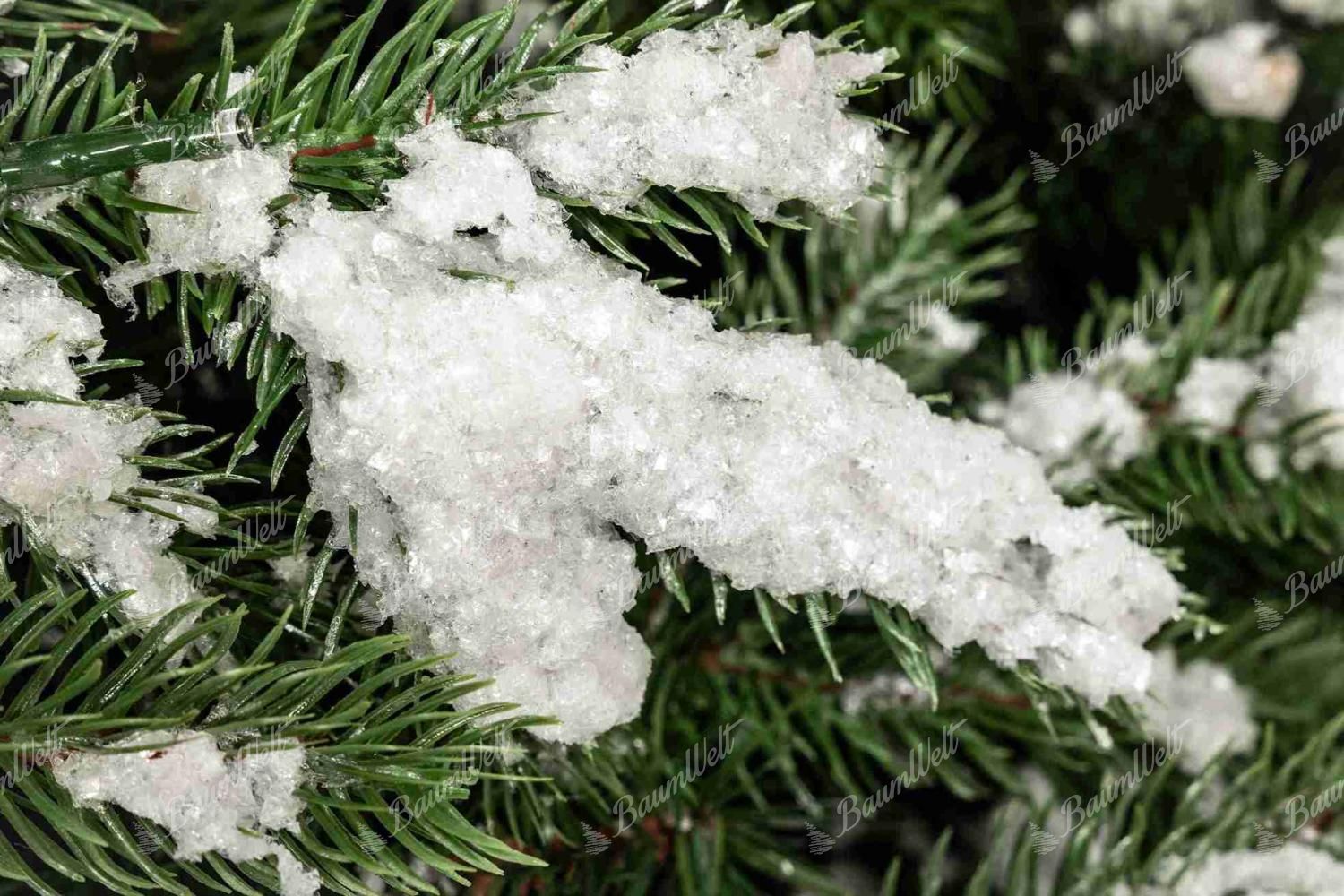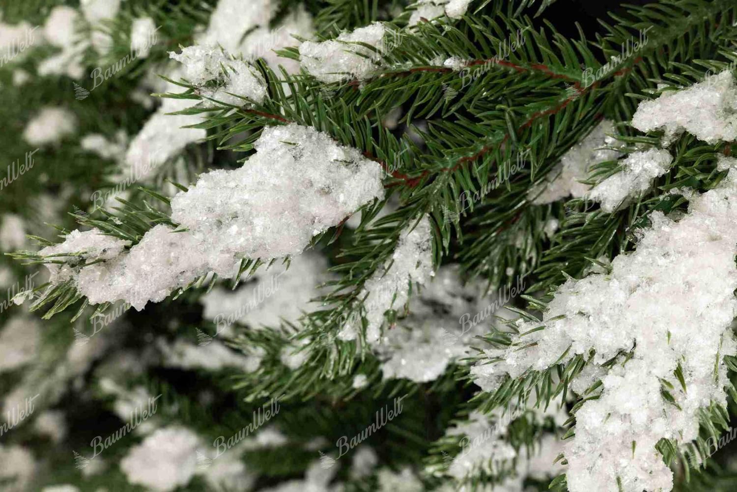 Der unregelmäßig verteilte Schnee betont die Textur des Baums und verleiht ihm ein authentisches, verschneites Aussehen, ideal für alle, die sich eine Weihnachtsdekoration mit dem Charme des Winters wünschen.