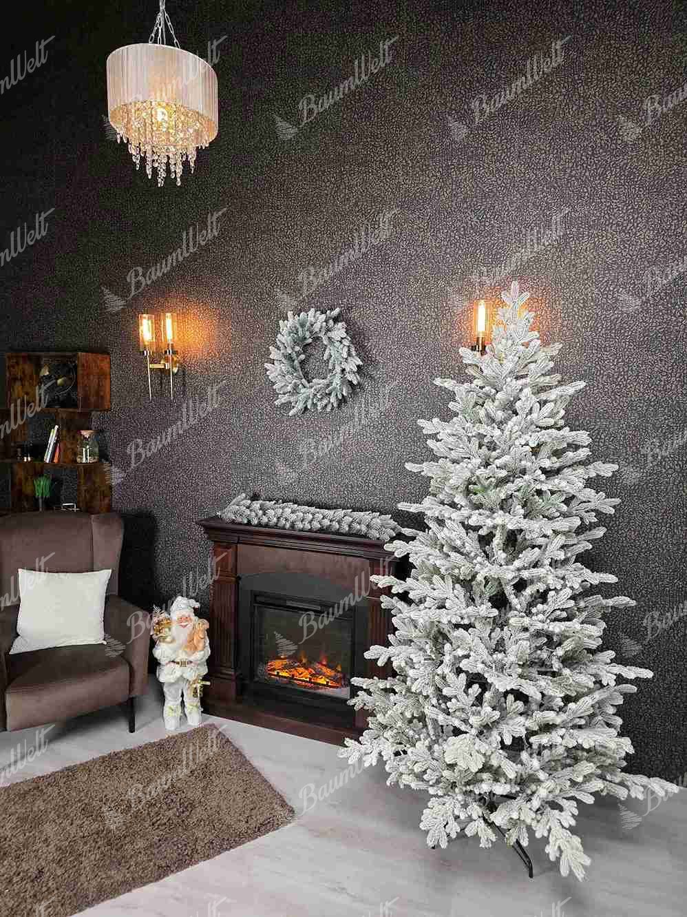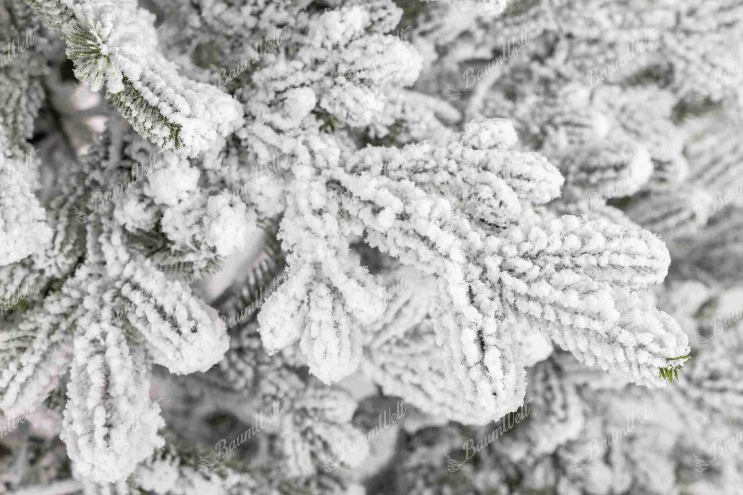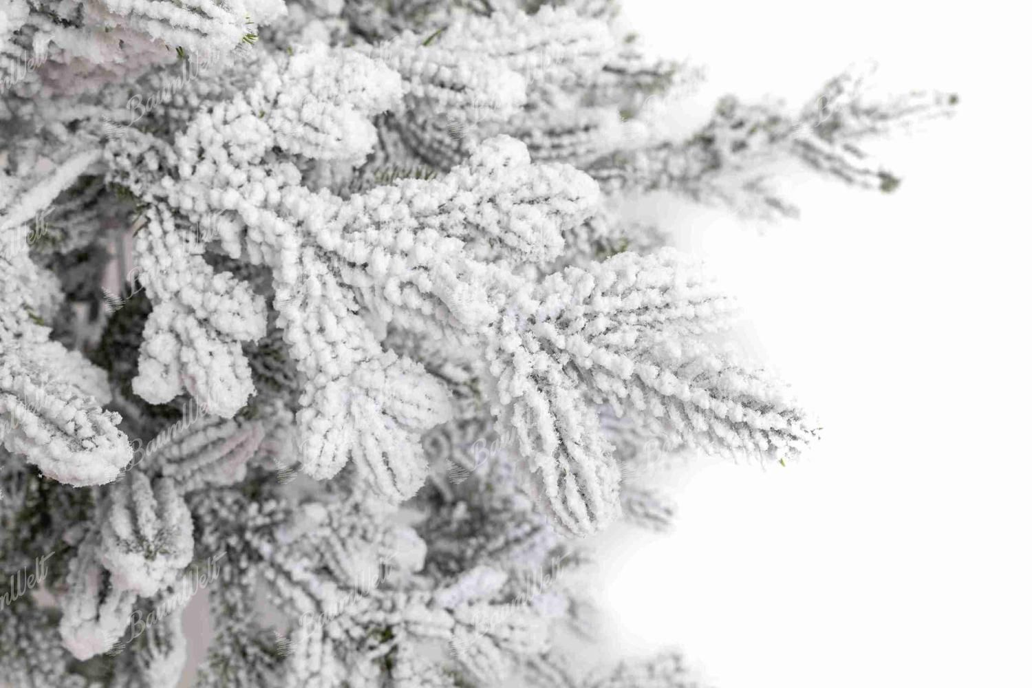 Die dichten Zweige dieses Baums bestehen aus detaillierten 3D-Nadeln, die gleichmäßig mit einer Schicht aus Kunstschnee bedeckt sind und einen wunderschönen Wintereffekt erzeugen.