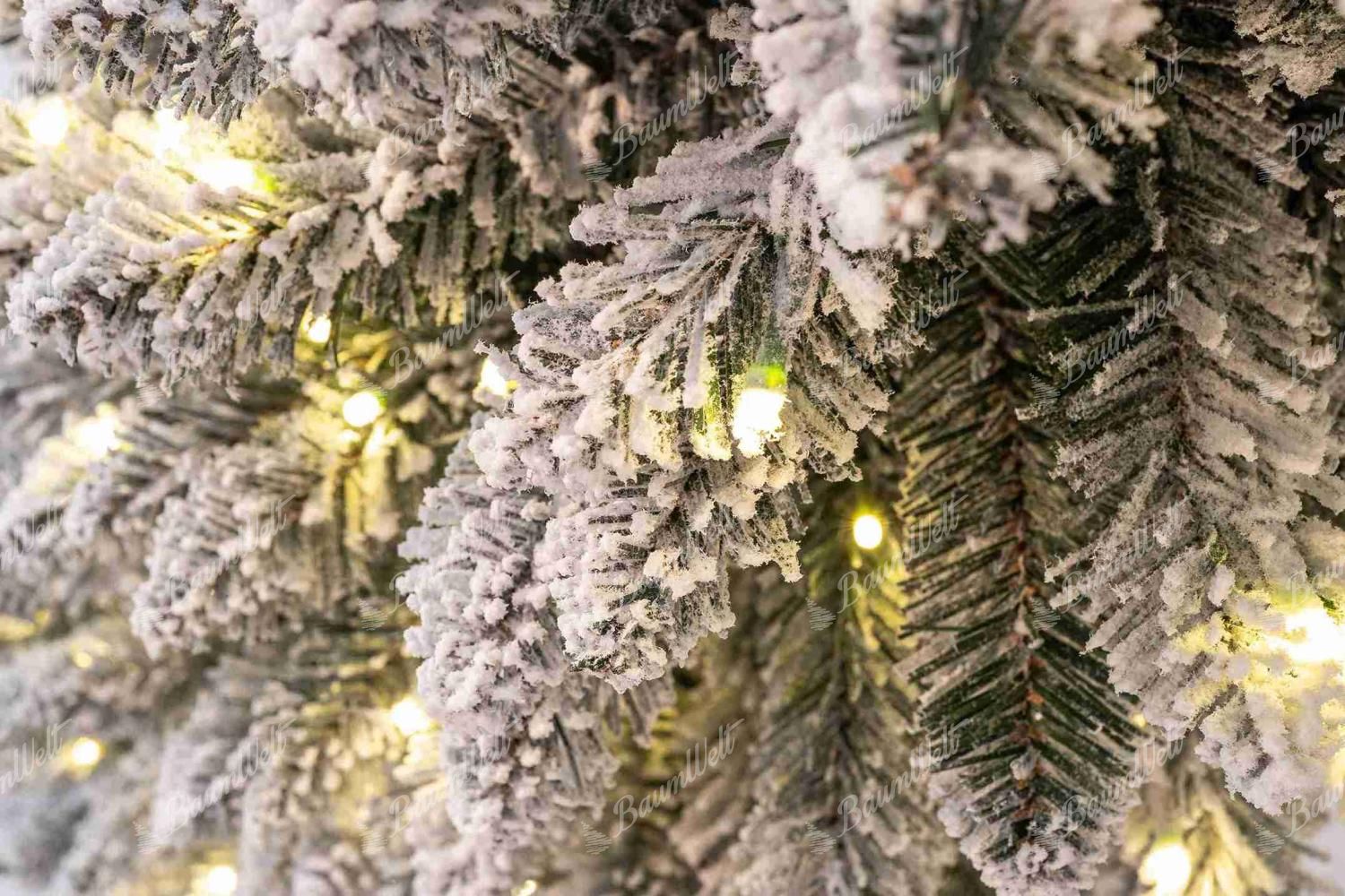 Der Kunstschnee wird mit modernster Technologie aufgebracht und fällt nicht ab. Wenn der Baum zum ersten Mal aufgeklappt wird, können nicht eingefangene Teile des Schnees freigesetzt werden. Der Baum hat ein ausziehbares Faltsystem, eine Metallkonstruktion und einen stabilen Metallständer, der im Lieferumfang enthalten ist.