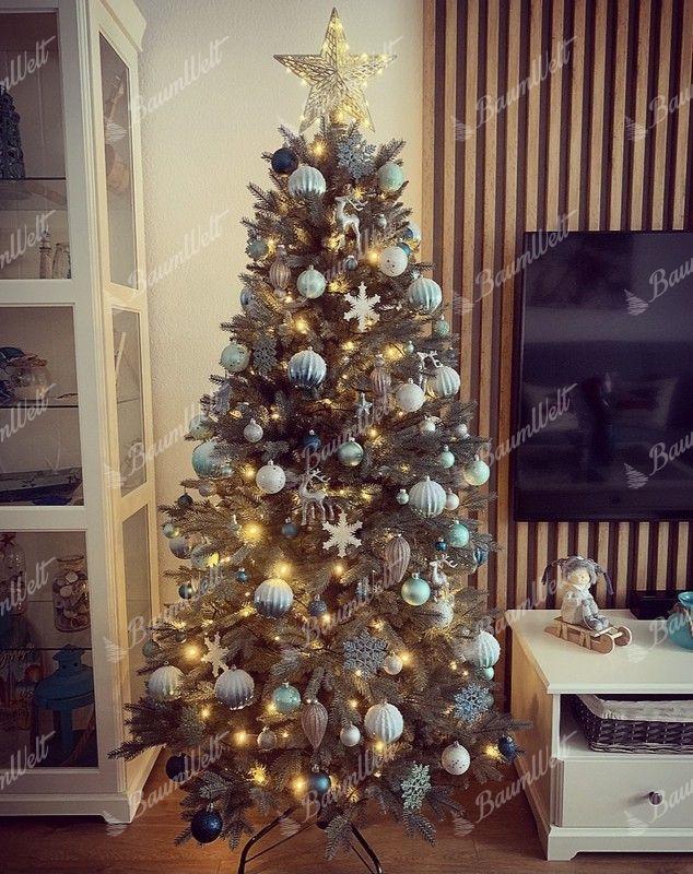 Künstlicher Weihnachtsbaum 3D Eisfichte wird Sie aufgrund ihrer einzigartigen Farbe und Form begeistern. Dank des eis-silbernen Farbtons der Zweige und ihrer realistisch wirkenden Platzierung sieht der Baum täuschend echt aus.