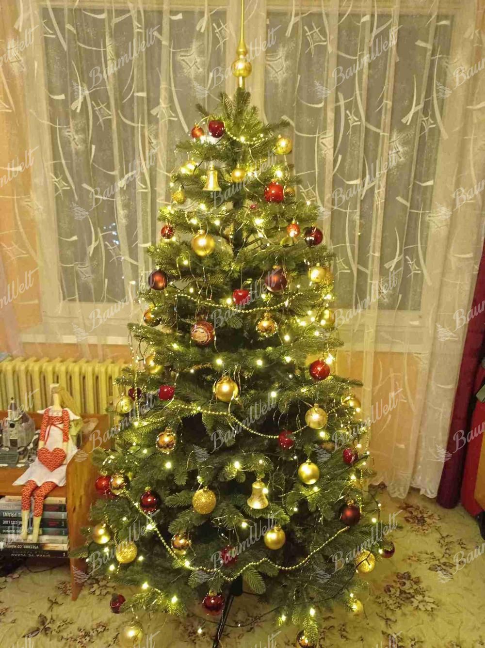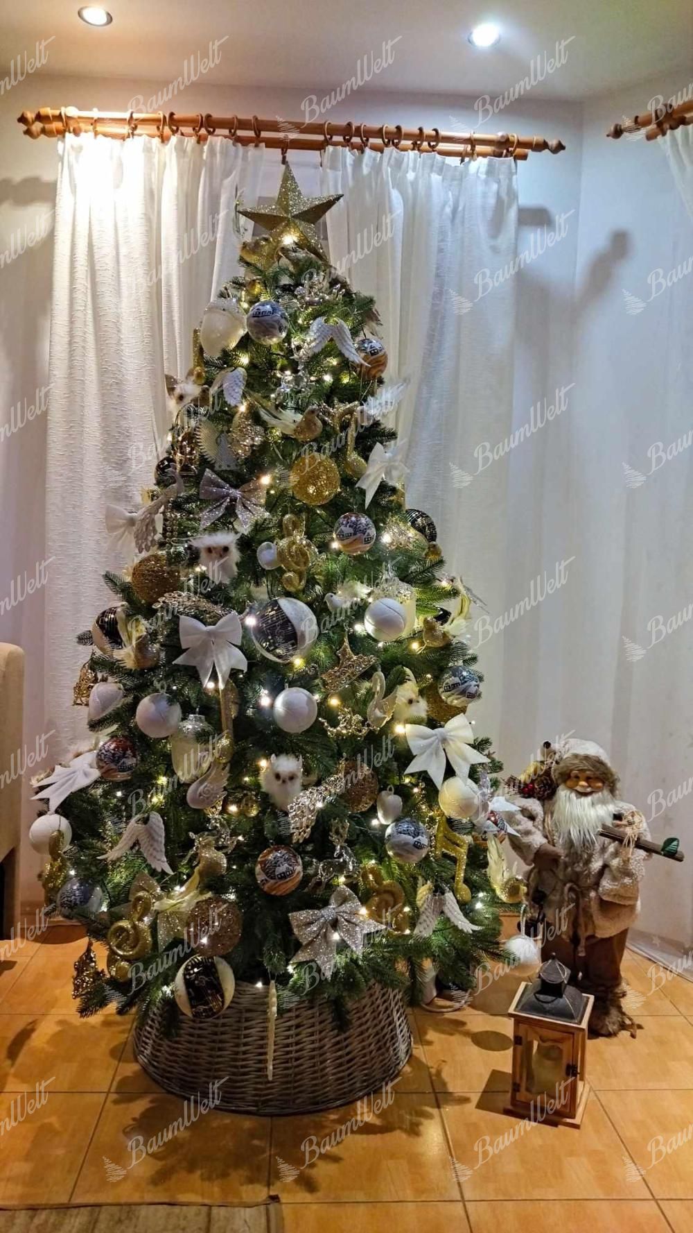 . Bei der Herstellung unserer 3D-Zweige werden nur hochwertige PE-Materialien verwendet. Der Baum wird in der Mitte mit klassischen PVC-Nadeln verdickt. Eine feste Eisenkonstruktion und ein Metallständer sind für alle von unseren angebotenen Weihnachtsbäumen inklusive.