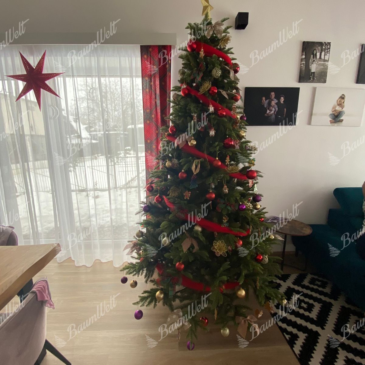 Die 3D Kaukasus-Tanne 280cm ist eine Neuheit der Saison 2025. Diese wunderschöne Tannenart zeichnen ihre speziellen Tannennadeln in blassgrüner Farbe aus. Die 3D-Zweige werden in der Mitte des Baumes durch klassische PVC-Zweige ergänzt, wodurch der Baum dichter wirkt.