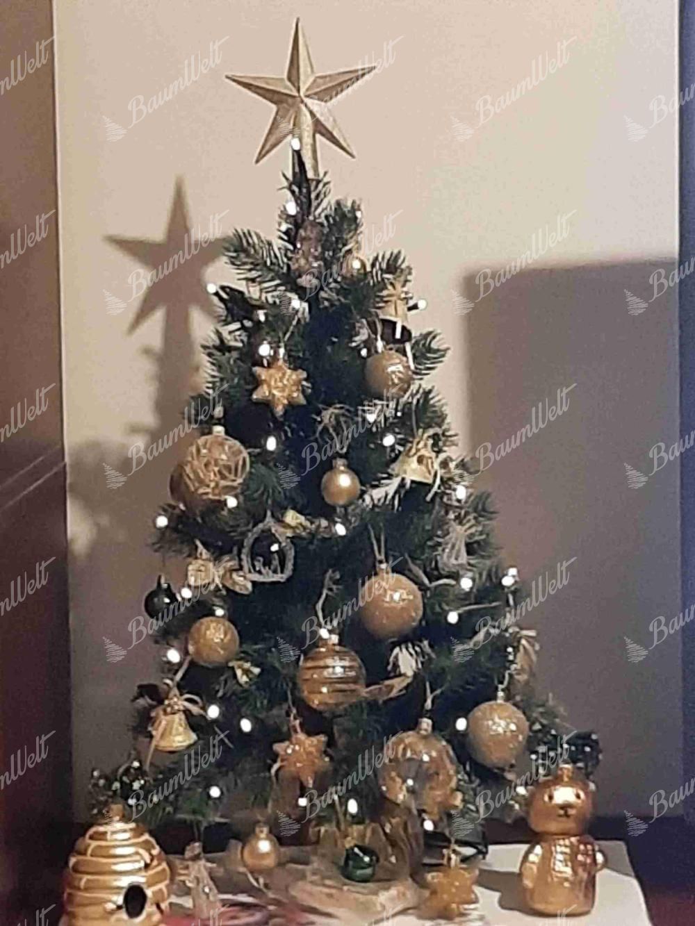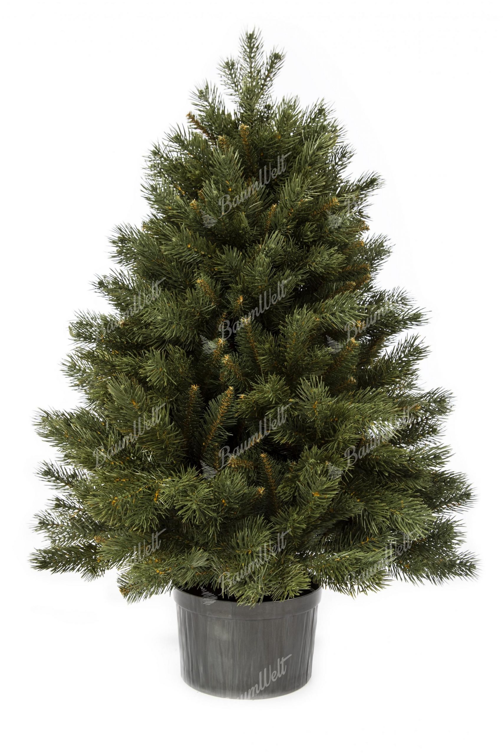Der Baum steht in einem stilvollen Topf und imitiert so einen echten, verpflanzten Baum. Der Weihnachtsbaum im Topf ist sehr beliebt und für jeden Haushalt geeignet.