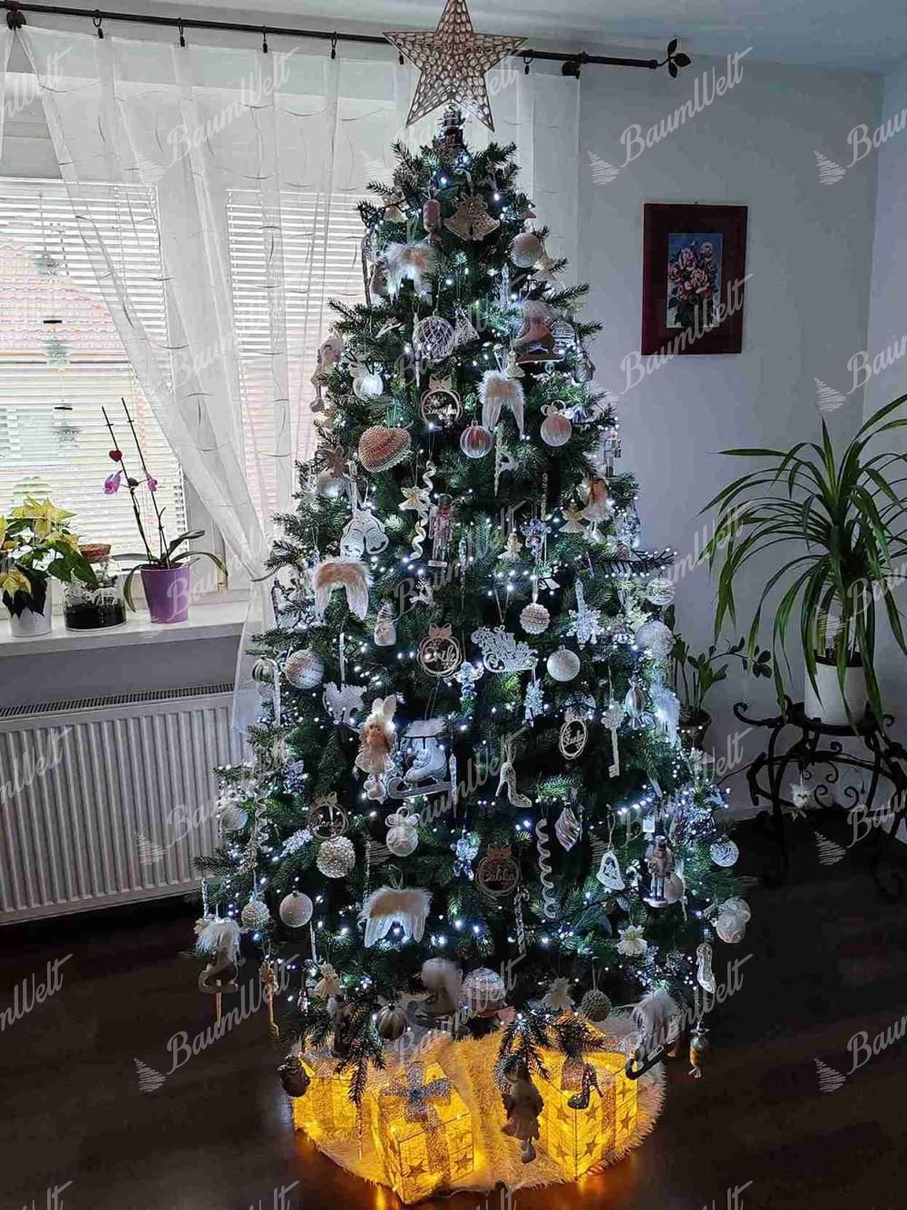 Der gesamte Baum ist aus hochwertigen Materialien hergestellt. Die perfekte Form des Baumes wird durch das Regenschirm-Faltsystem gewährleistet, das die Zweige an der richtigen Stelle platziert. Ein stabiler Metallständer ist im Lieferumfang enthalten.