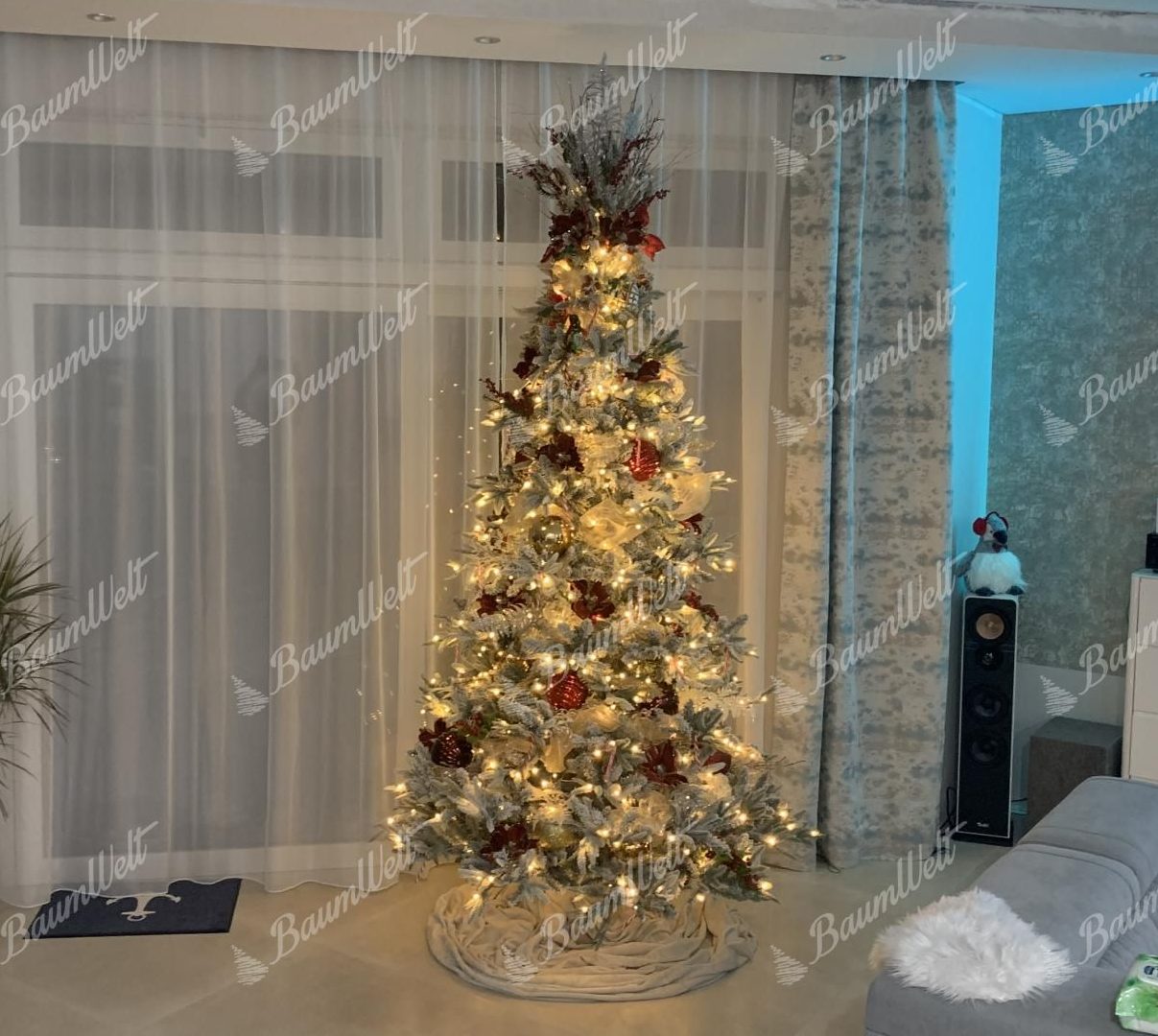 - Anzahl der LED-Lichter 180cm – 250LED, 210cm – 350LED, 240cm – 500LED, 270cm – 750LED