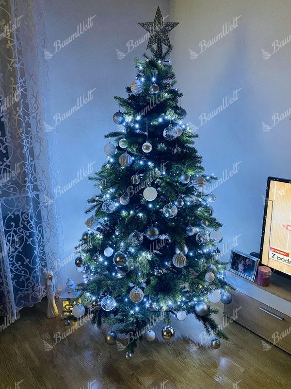 Wir bieten den authentischen Baum in einer schönen Kombination aus hellgrünen und dunkelgrünen 3D-Nadeln an, wobei die Mitte des Baumes mit dichten, dunklen PVC-Nadeln gefüllt ist, die für ein reichhaltiges und dichtes Aussehen sorgen, und das in einem noch moderneren Design.