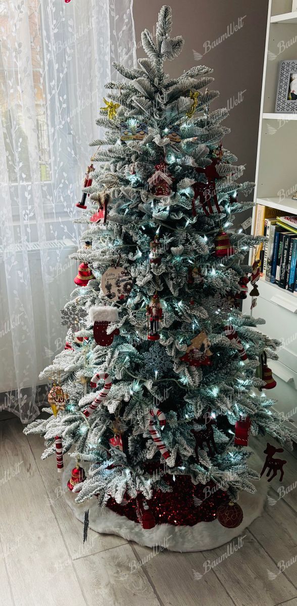 Der stark verschneite Weihnachtsbaum 3D Tanne Alabaster ist ein luxuriöser Baum, der mit seinem verschneiten, winterlichen Aussehen die perfekte märchenhafte Weihnachtsstimmung in jeden Raum zaubert. Dieser dicht verschneite Baum hat lange tannengrüne 3D-Zweige, die sich sanft unter einer dicken Kunstschneeschicht abzeichnen und dem Baum ein einzigartiges Aussehen verleihen.
