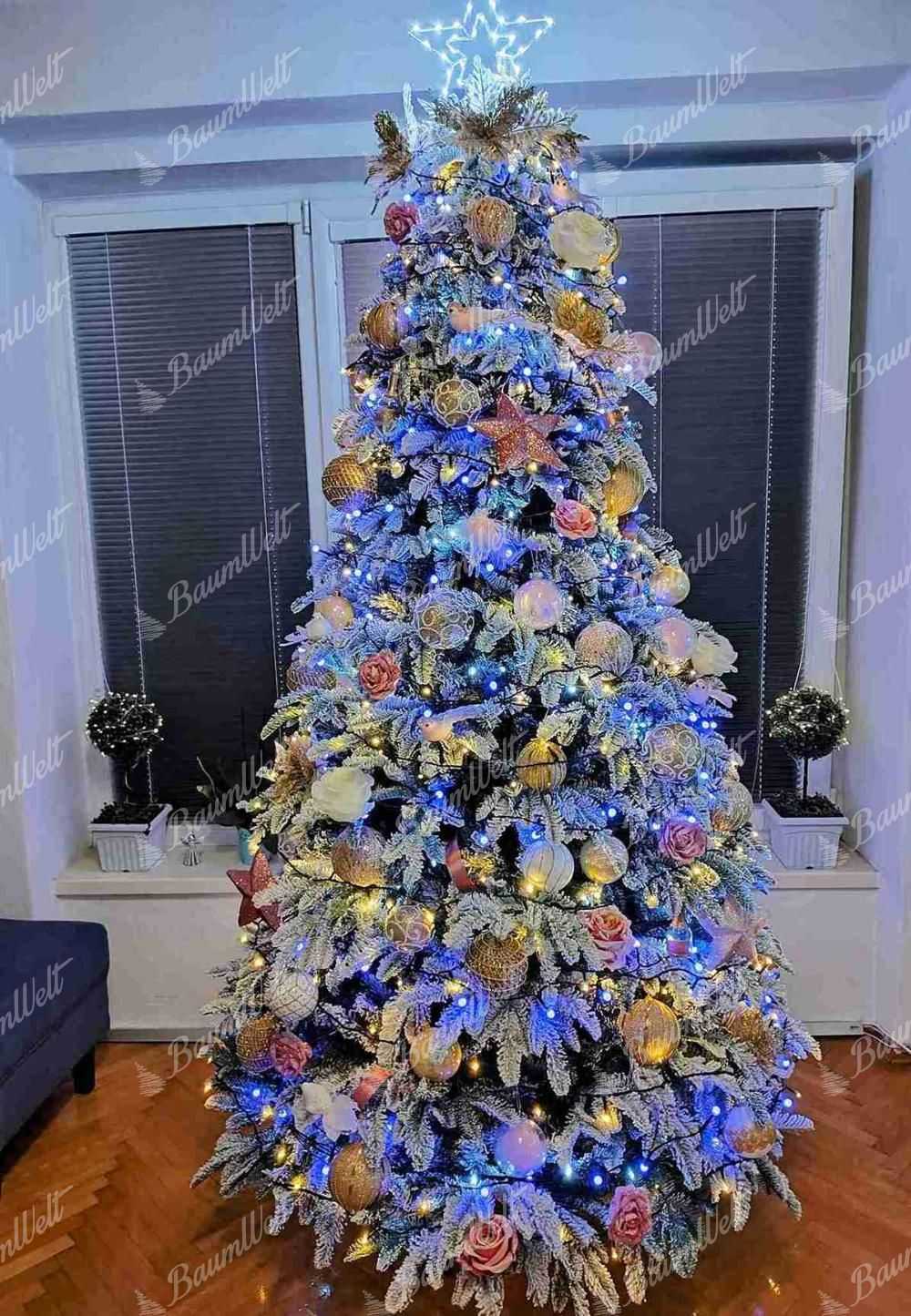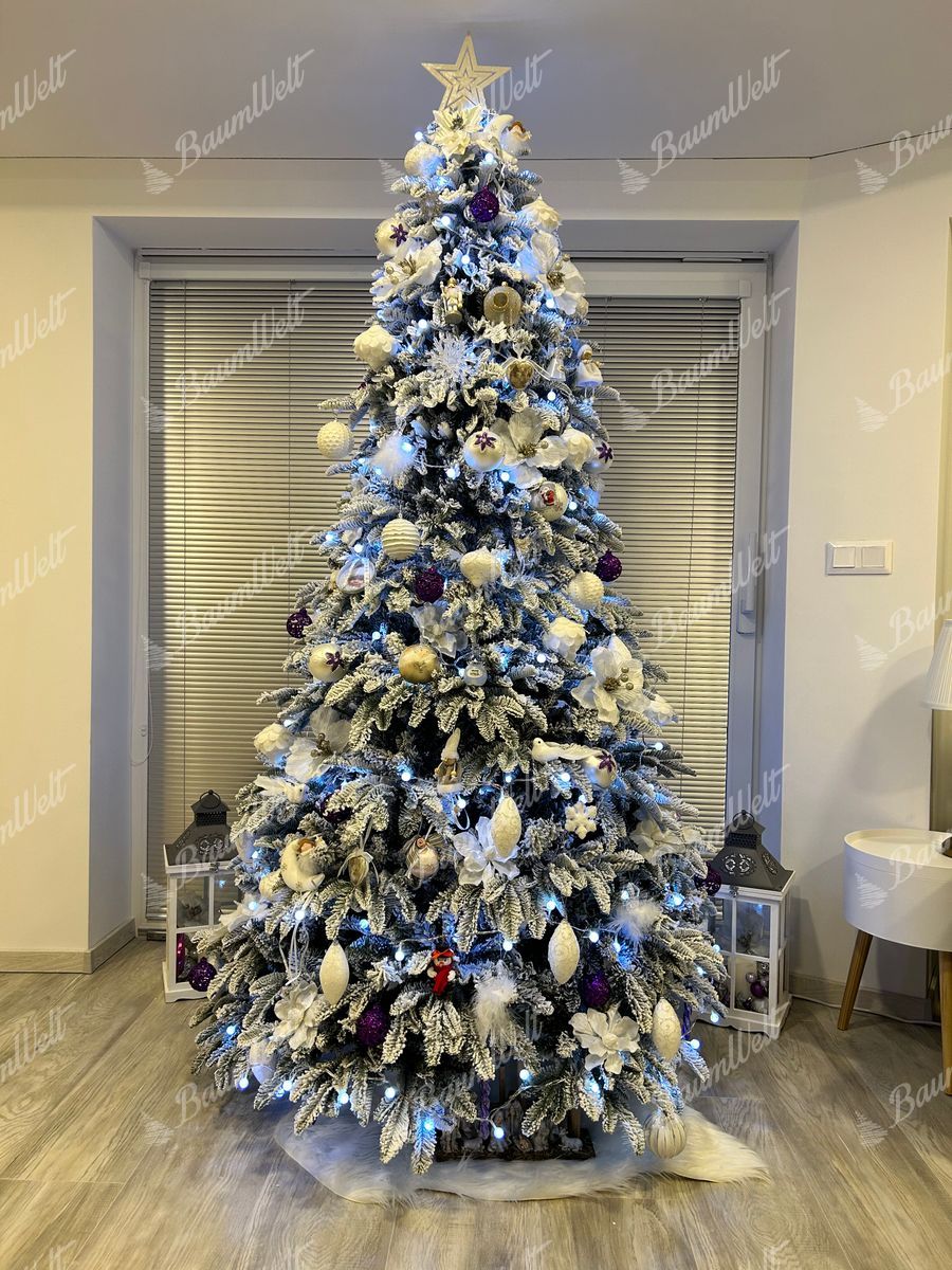 Künstlicher weißer 3D Weihnachtsbaum, Höhe 210cm, Breite 130cm, schneebedeckte Tannennadeln 3D, Nadeln Typ 3D (PE) + PVC, Design – extra dick, schneebedeckt, Metallständer, Spitzenlänge – 20cm, Anzahl der Teile -3