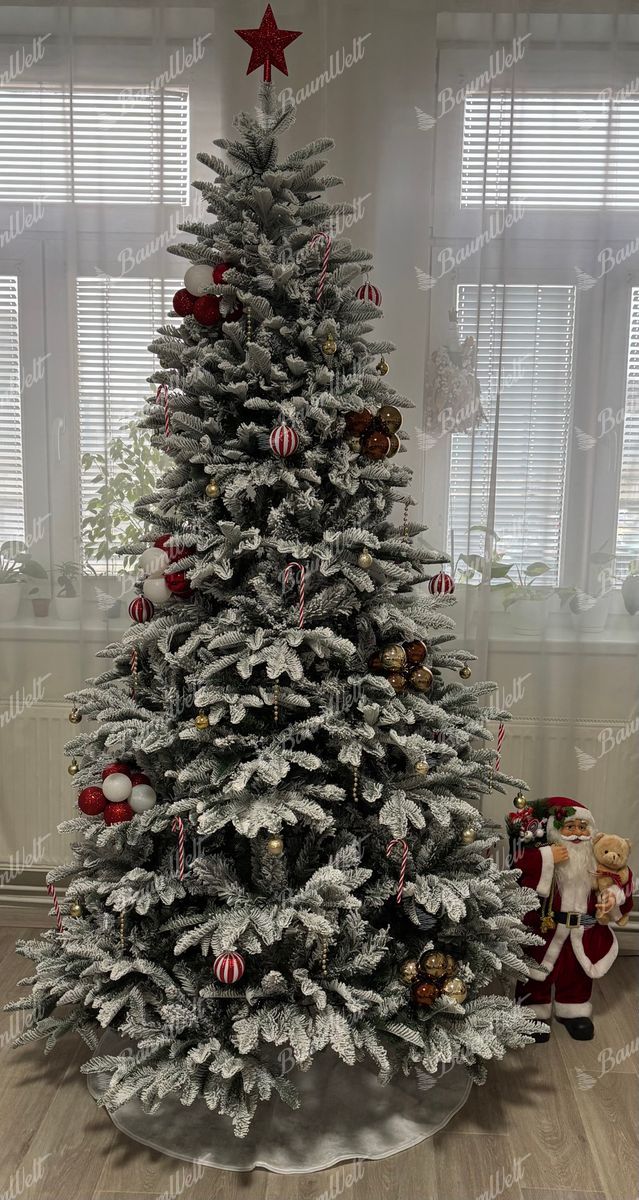Der stark verschneite Weihnachtsbaum 3D Tanne Alabaster ist ein luxuriöser Baum, der mit seinem verschneiten, winterlichen Aussehen die perfekte märchenhafte Weihnachtsstimmung in jeden Raum zaubert. Dieser dicht verschneite Baum hat lange tannengrüne 3D-Zweige, die sich sanft unter einer dicken Kunstschneeschicht abzeichnen und dem Baum ein einzigartiges Aussehen verleihen.