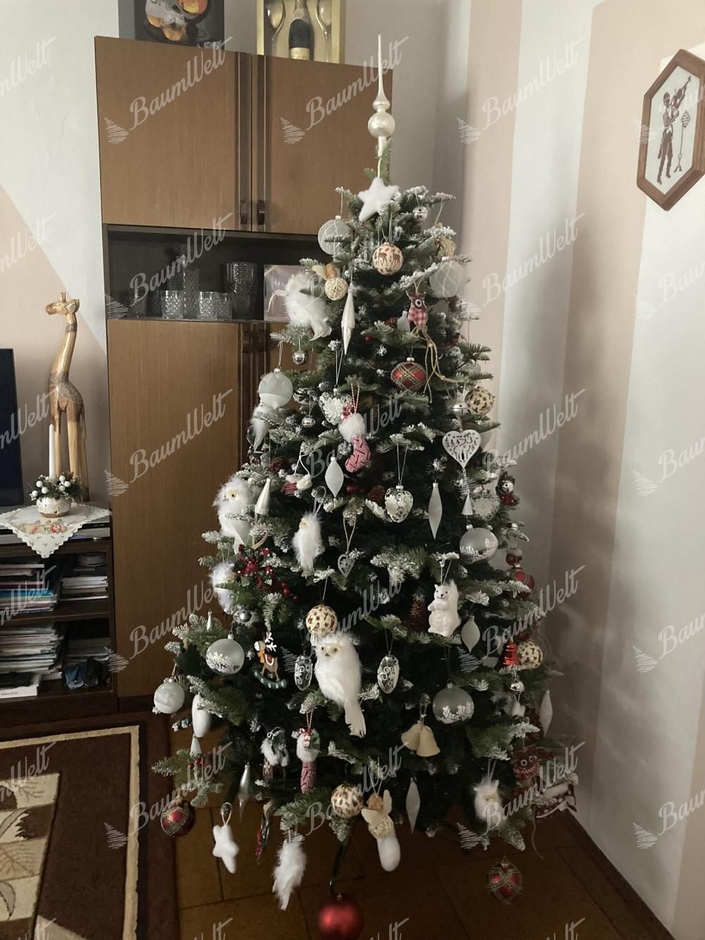 Der Weihnachtsbaum wird neben den 3D-Nadeln durch klassische PVC-Nadeln ergänzt, die ebenfalls an den Zweigenden mit Kunstschnee bedeckt sind und so perfekt einen echten, schneebedeckten Baum imitieren. Die hochwertige Eisenkonstruktion und ein stabiler Eisenständer sind Bestandteile der Verpackung.