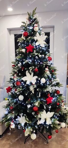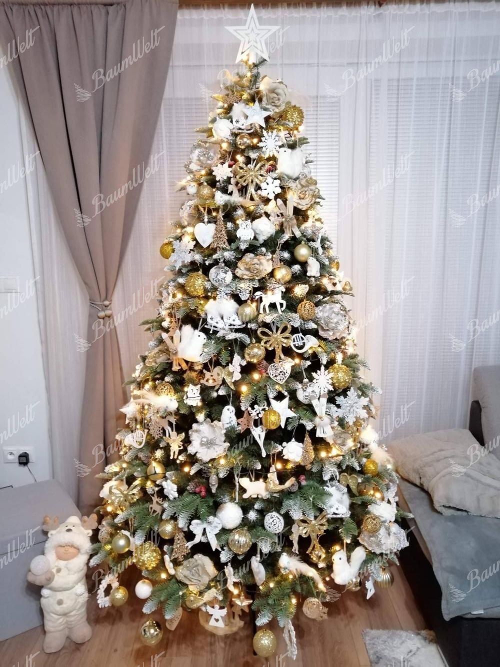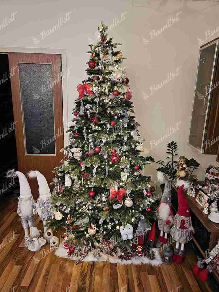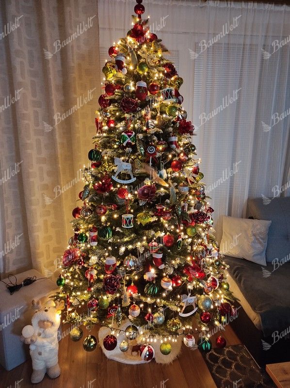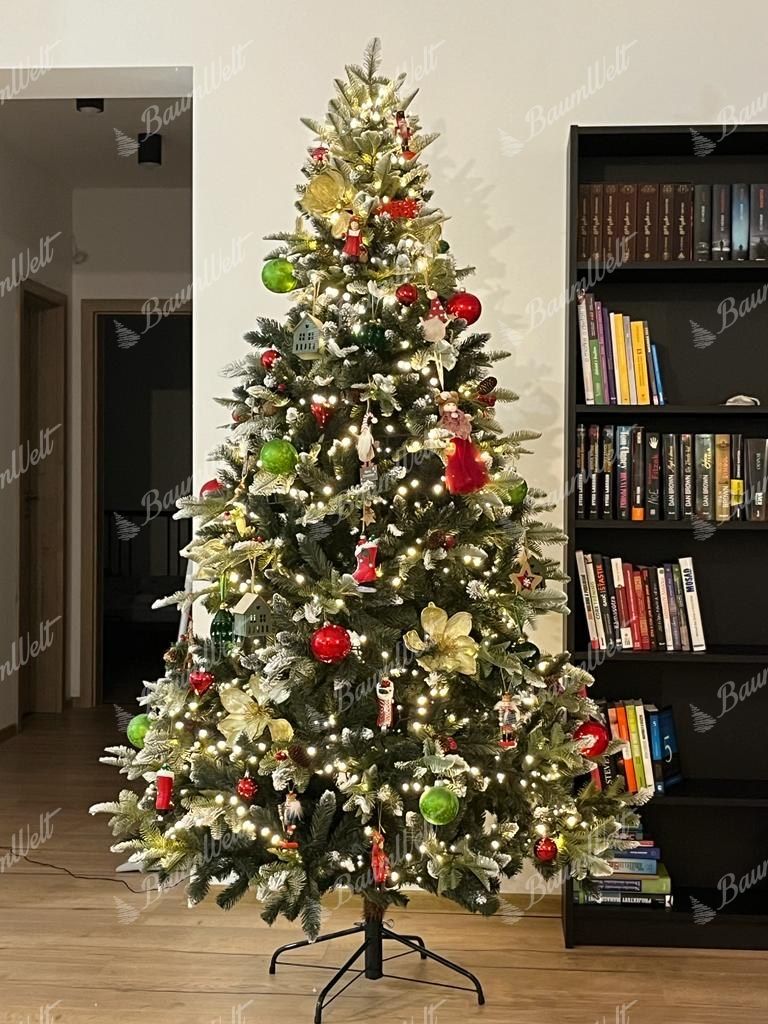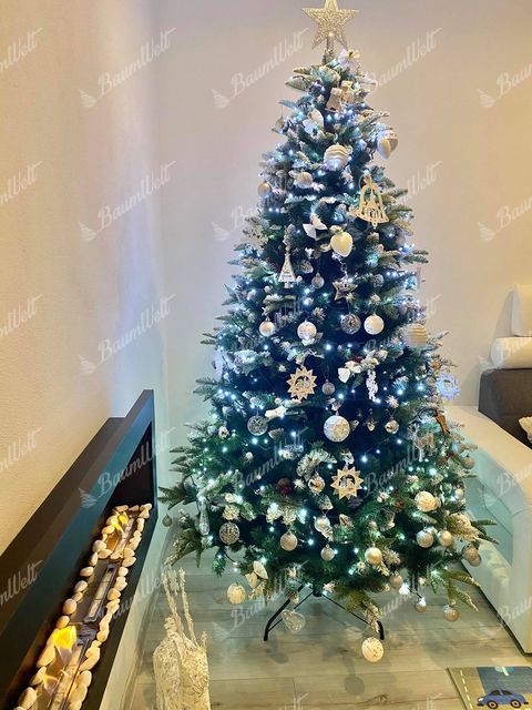 Der Weihnachtsbaum wird neben den 3D-Nadeln durch klassische PVC-Nadeln ergänzt, die ebenfalls an den Zweigenden mit Kunstschnee bedeckt sind und so perfekt einen echten, schneebedeckten Baum imitieren. Die hochwertige Eisenkonstruktion und ein stabiler Eisenständer sind Bestandteile der Verpackung.