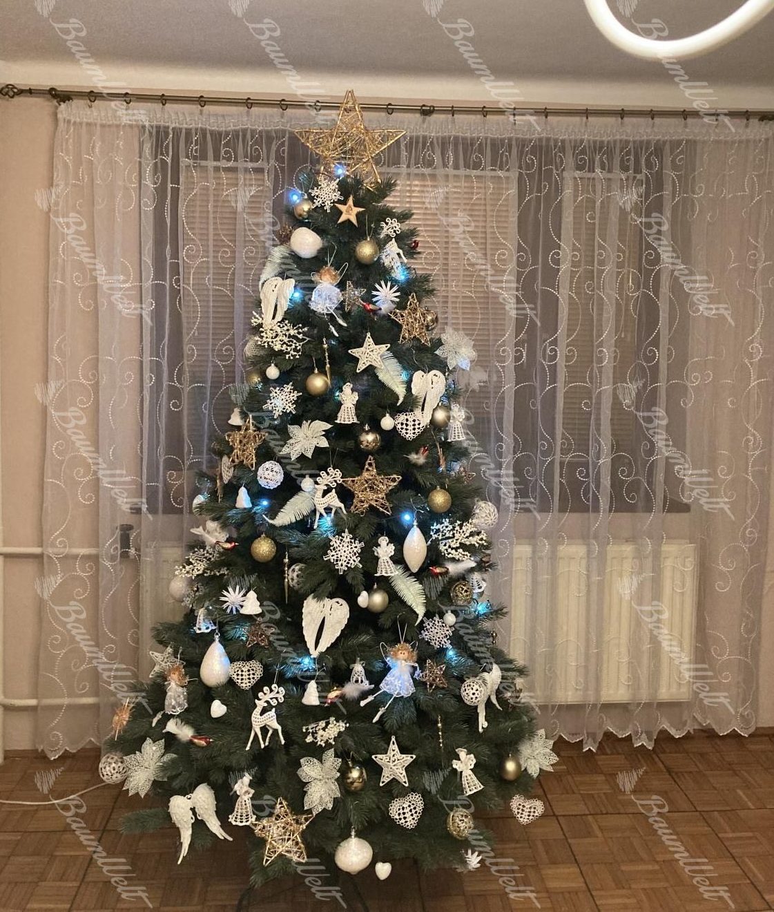 Dieser realistische Baum sieht so täuschend echt aus, dass man nur schwer erahnen kann, dass es sich um einen künstlichen Weihnachtsbaum handelt.
