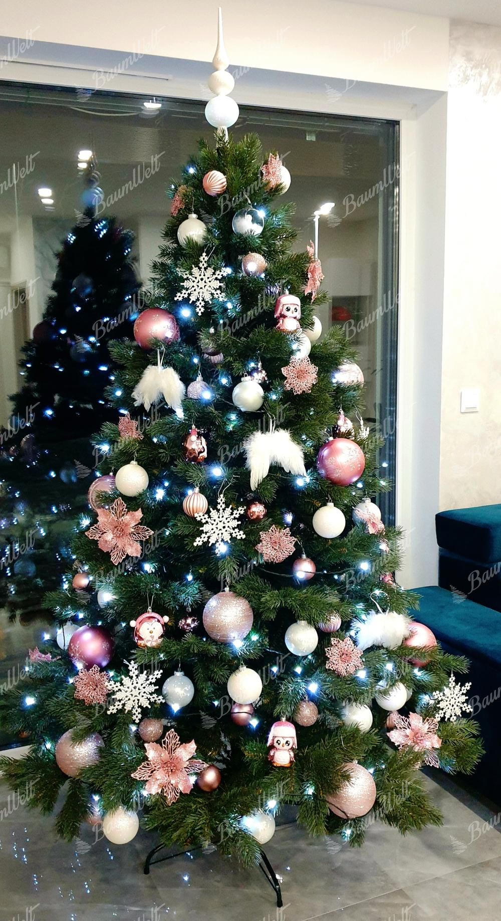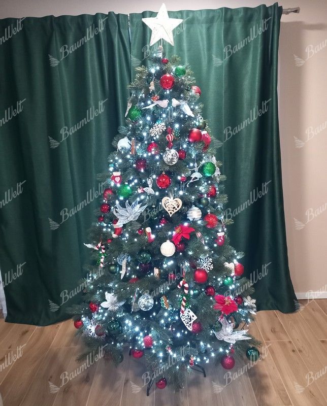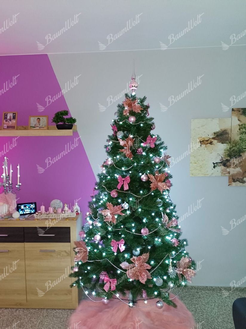 Für die Herstellung des Baumes werden hochwertige PE- und PVC-Materialien verwendet, durch die Sie jahrelang Freude an ihm haben werden. Für ein volleres und dichteres Aussehen wird die Mitte des Baumes durch klassische PVC-Nadeln ergänzt. Eine feste Eisenkonstruktion und ein Metallständer sind inklusive.