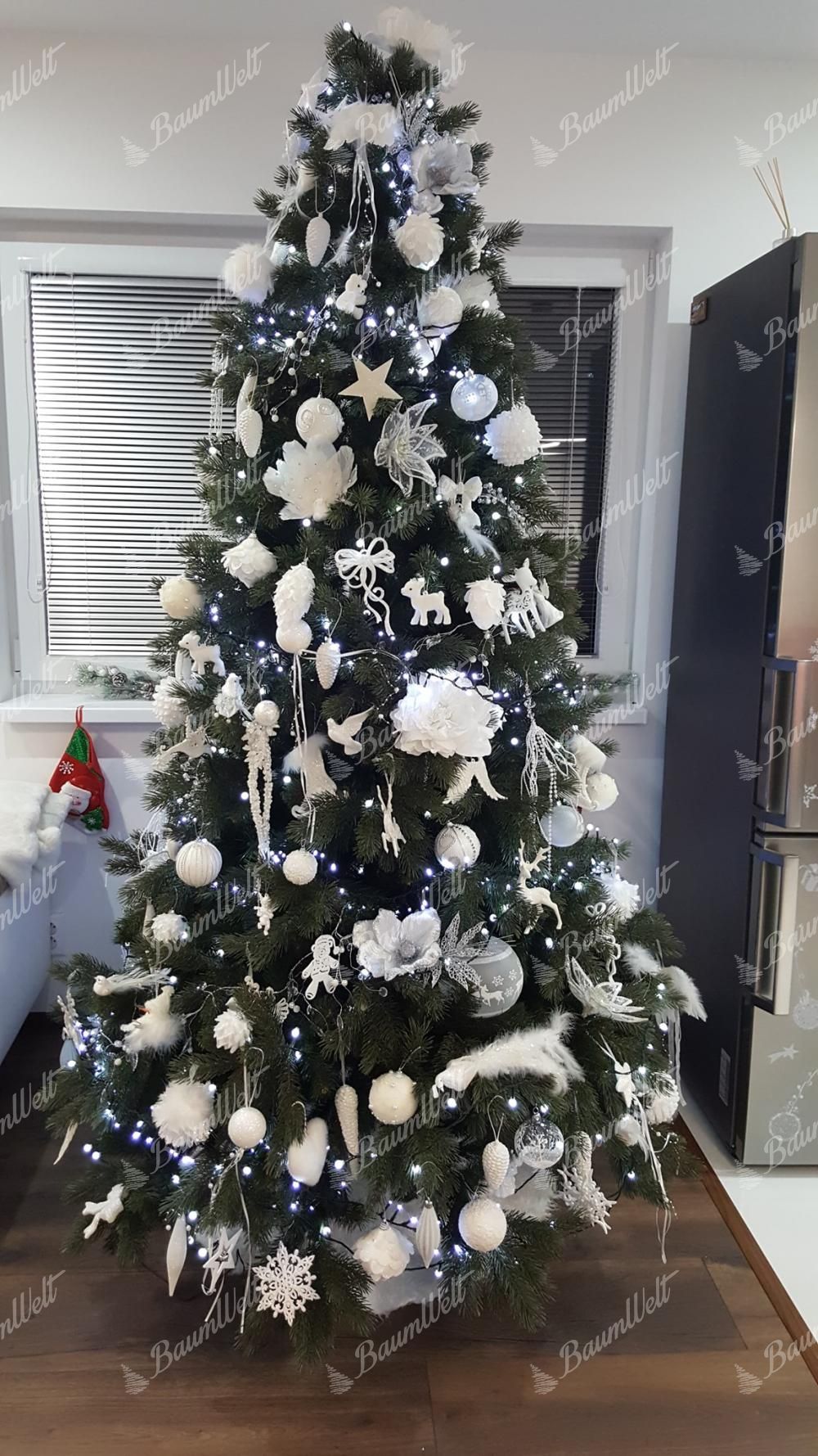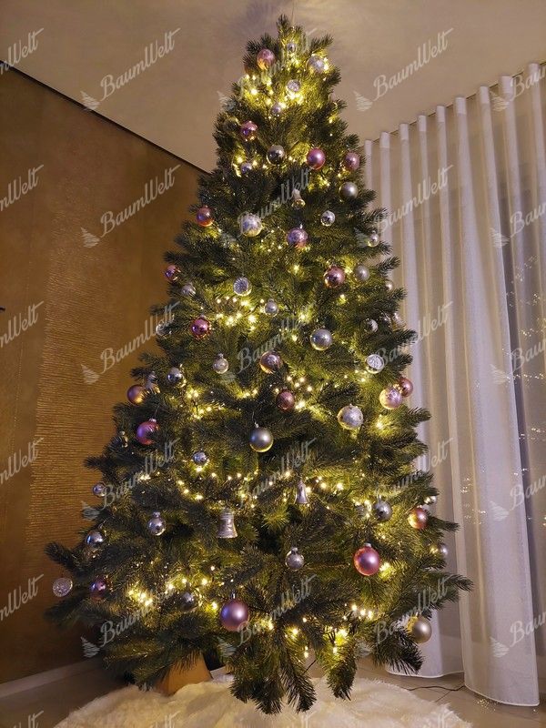 Dieser realistische Baum sieht so täuschend echt aus, dass man nur schwer erahnen kann, dass es sich um einen künstlichen Weihnachtsbaum handelt.