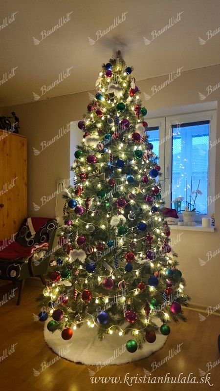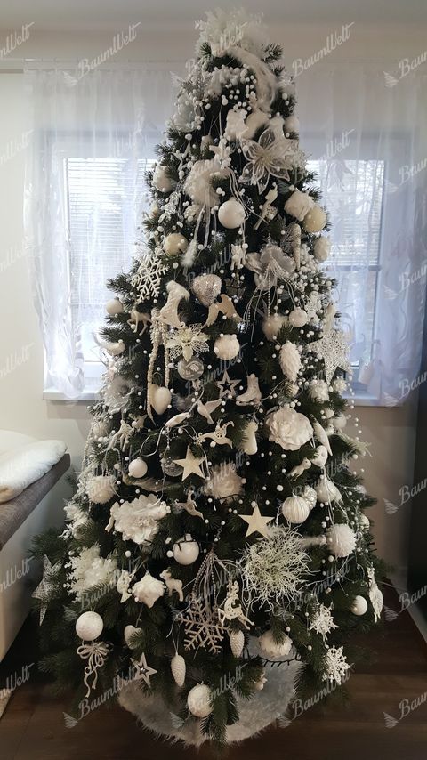Für die Herstellung des Baumes werden hochwertige PE- und PVC-Materialien verwendet, durch die Sie jahrelang Freude an ihm haben werden. Für ein volleres und dichteres Aussehen wird die Mitte des Baumes durch klassische PVC-Nadeln ergänzt. Eine feste Eisenkonstruktion und ein Metallständer sind inklusive.