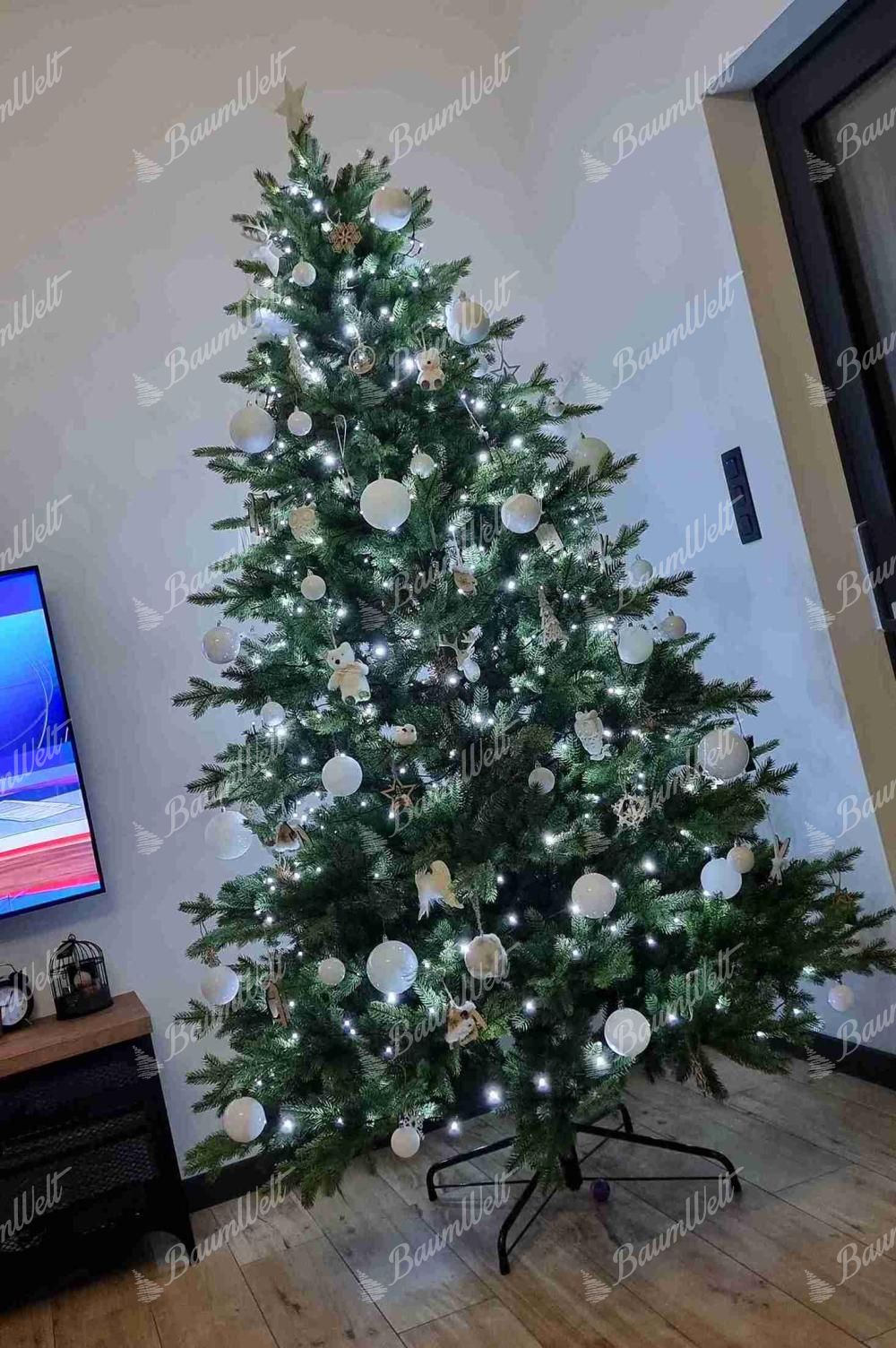 Weiche 3D-Zweige bestehen aus bestem PE-Werkstoffen (Polyethylen), die mit modernsten Technologien hergestellt werden. Die natürlich grünen 3D-Nadeln des Weihnachtsbaums sind von echten nicht zu unterscheiden. Der Baum verfügt über eine solide Eisenkonstruktion und einen stabilen Metallständer, der im Lieferumfang enthalten ist.