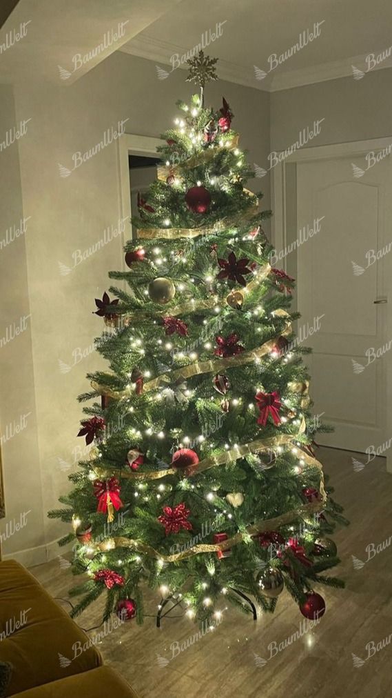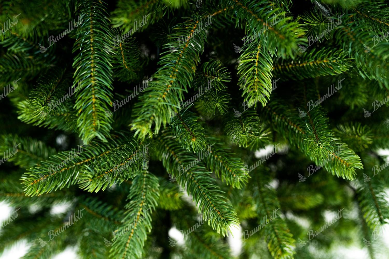 Die Nadeln kombinieren sich aus einem hell- und dunkelgrünen Farbton. Dank des Regenschirm-Faltsystems hat der Baum eine perfekte Form.