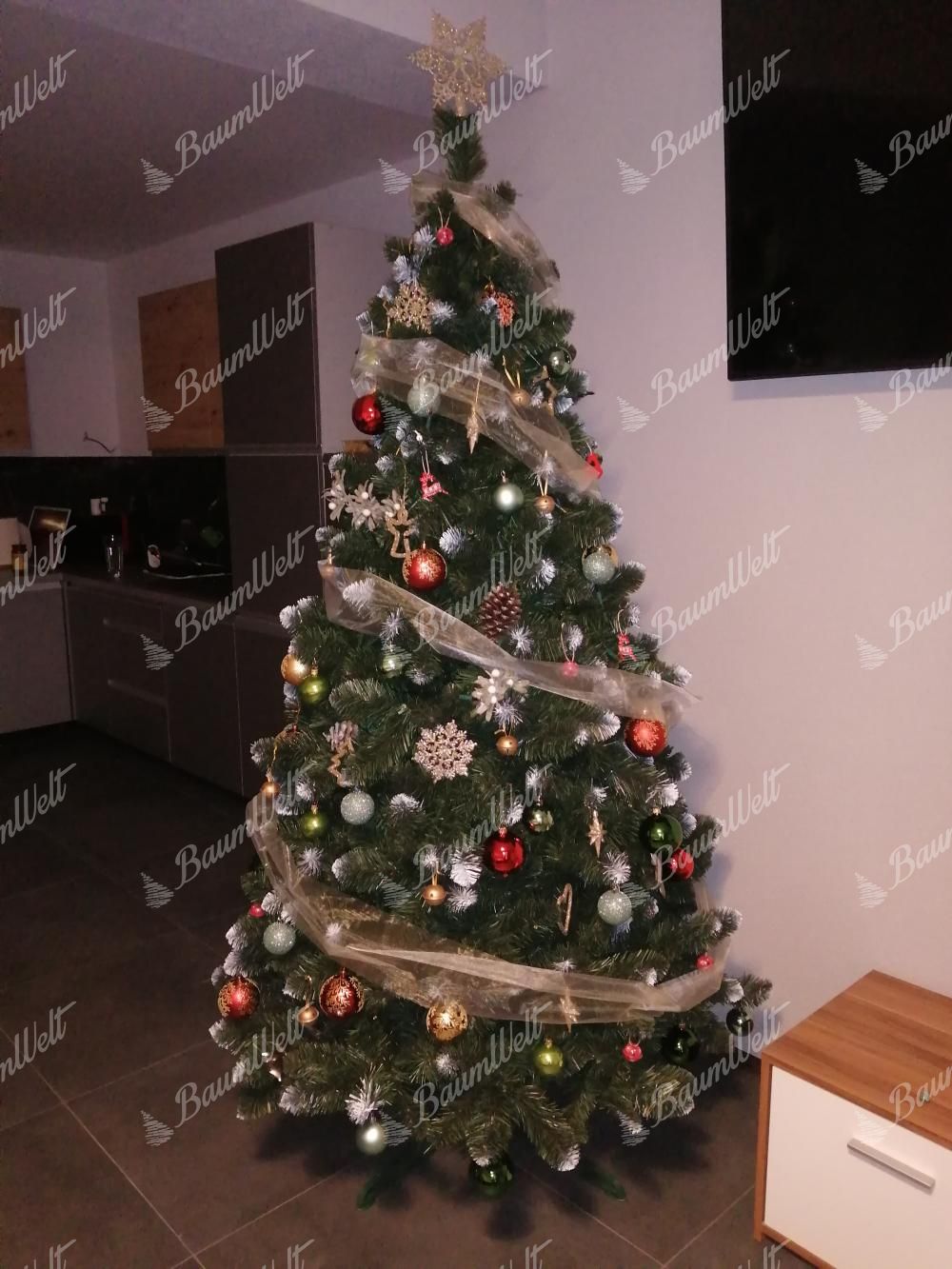 Künstlicher Weihnachtsbaum, Höhe 220cm, Breite 125cm, Nadeltyp – PVC, Design – extra dicht, künstlicher Christbaumständer, Spitzenlänge – 20cm, Anzahl der Teile –3
