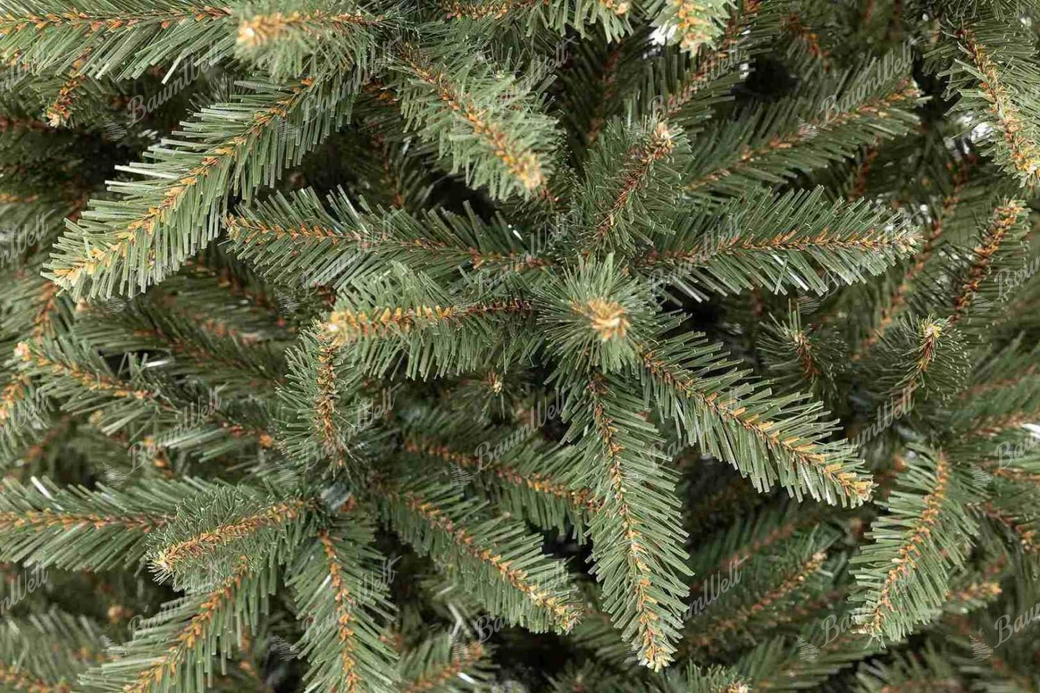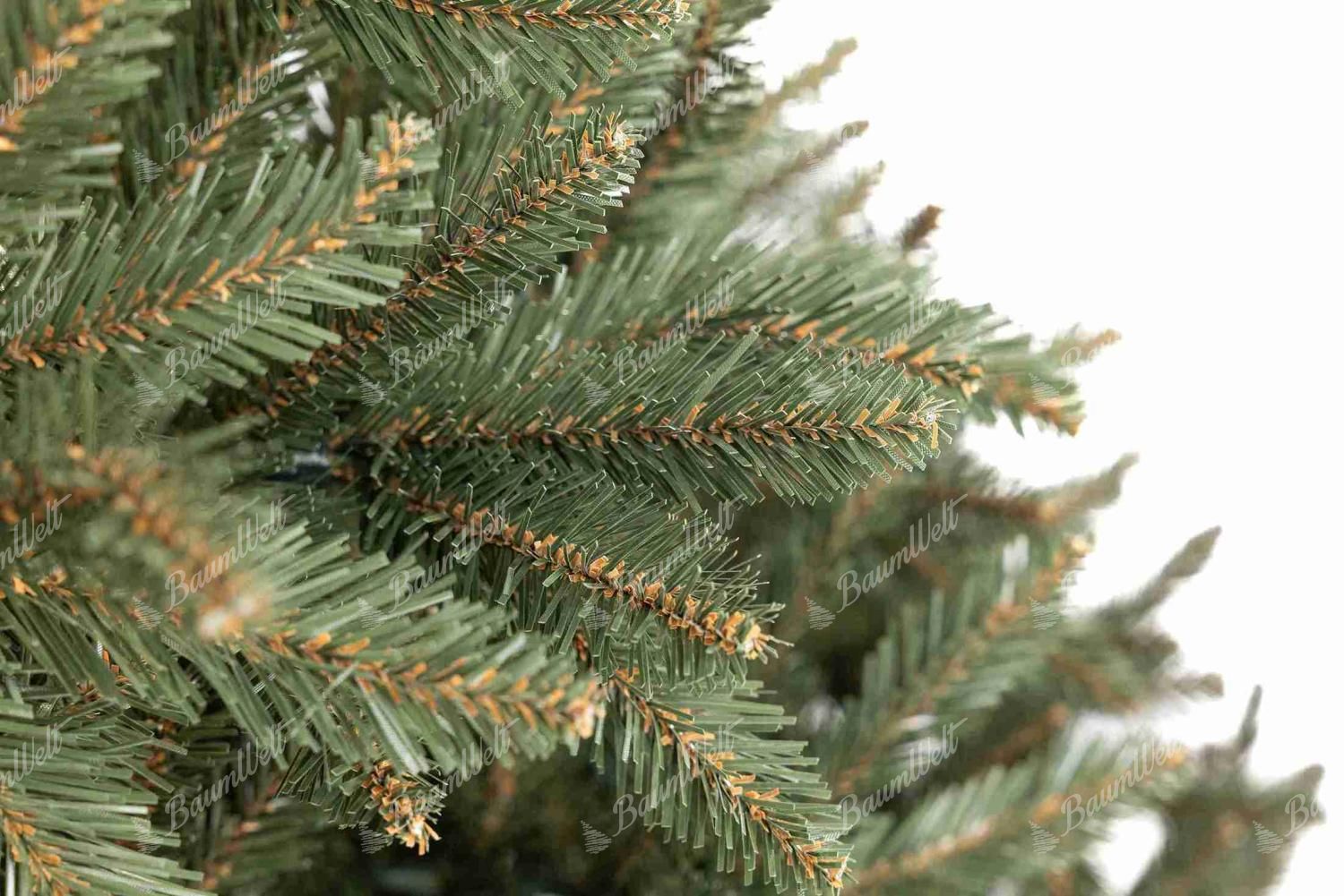 Der künstliche Weihnachtsbaum Nordische Fichte zeichnet sich durch schmale PVC-Nadeln und eine große Anzahl von Zweigen aus. Die hochwertige Eisenkonstruktion und ein stabiler Christbaumständer sind Bestandteile der Verpackung.