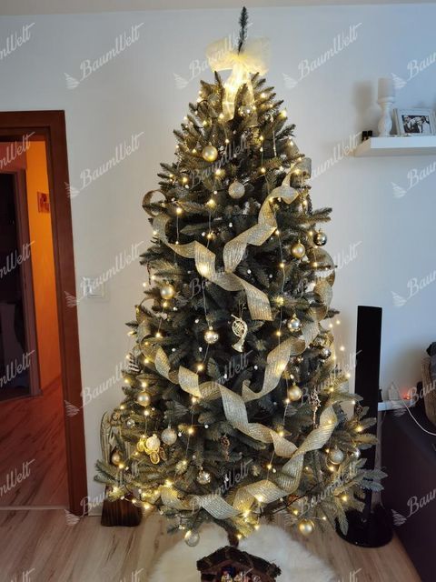 Der künstliche Weihnachtsbaum Nordische Fichte zeichnet sich durch schmale PVC-Nadeln und eine große Anzahl von Zweigen aus. Die hochwertige Eisenkonstruktion und ein stabiler Christbaumständer sind Bestandteile der Verpackung.