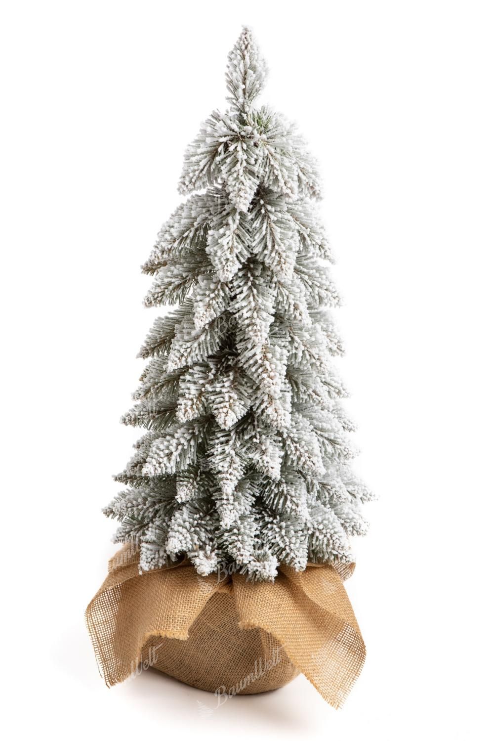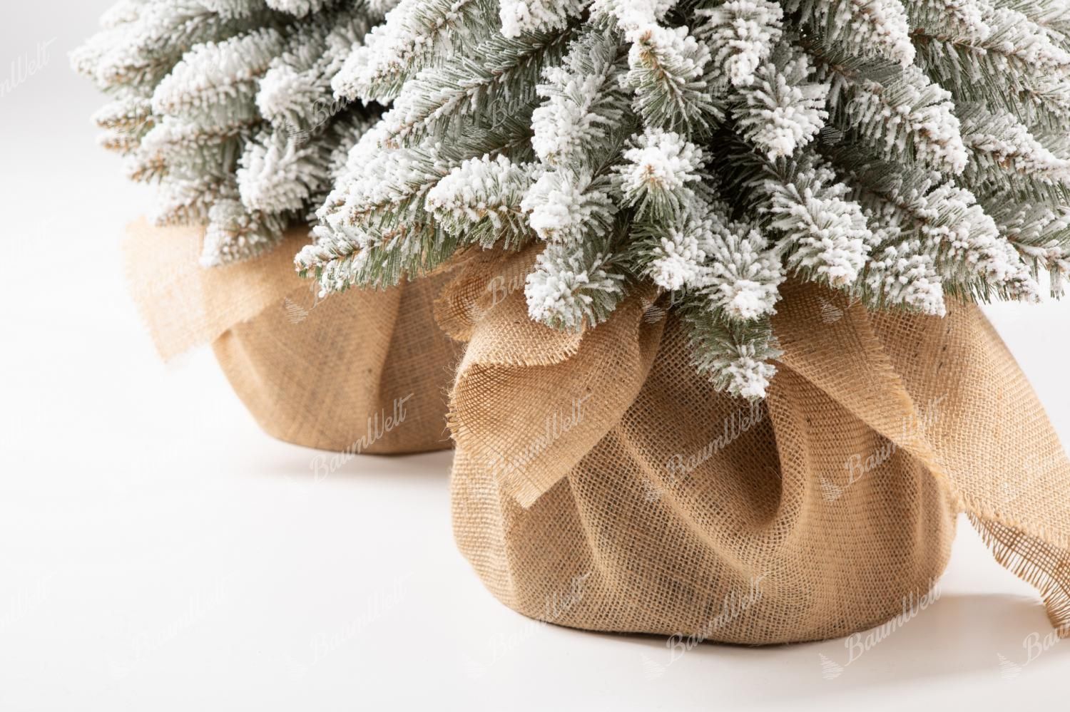 Dieser Baum befindet sich in einem stilvollen Topf aus Sackleinen.