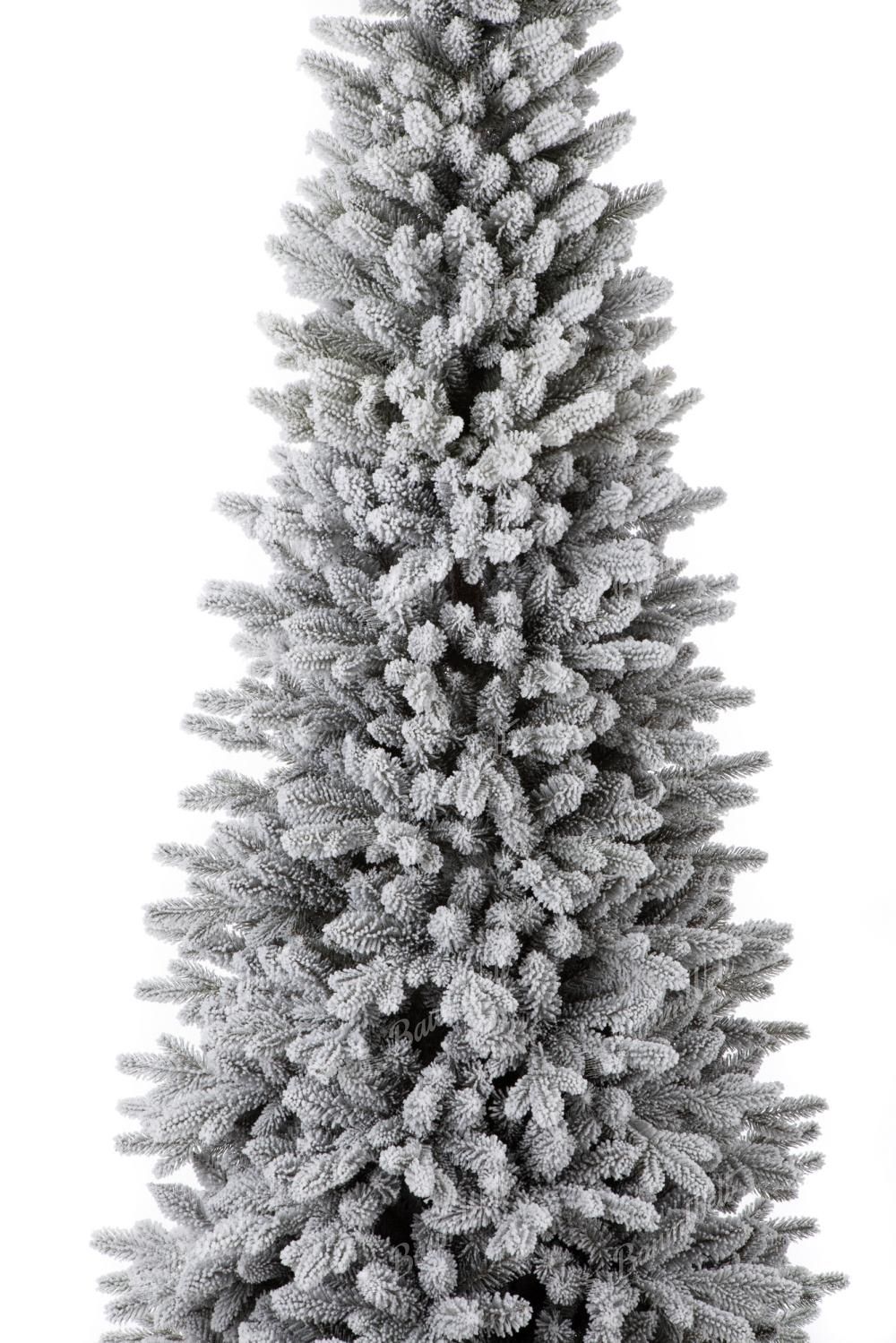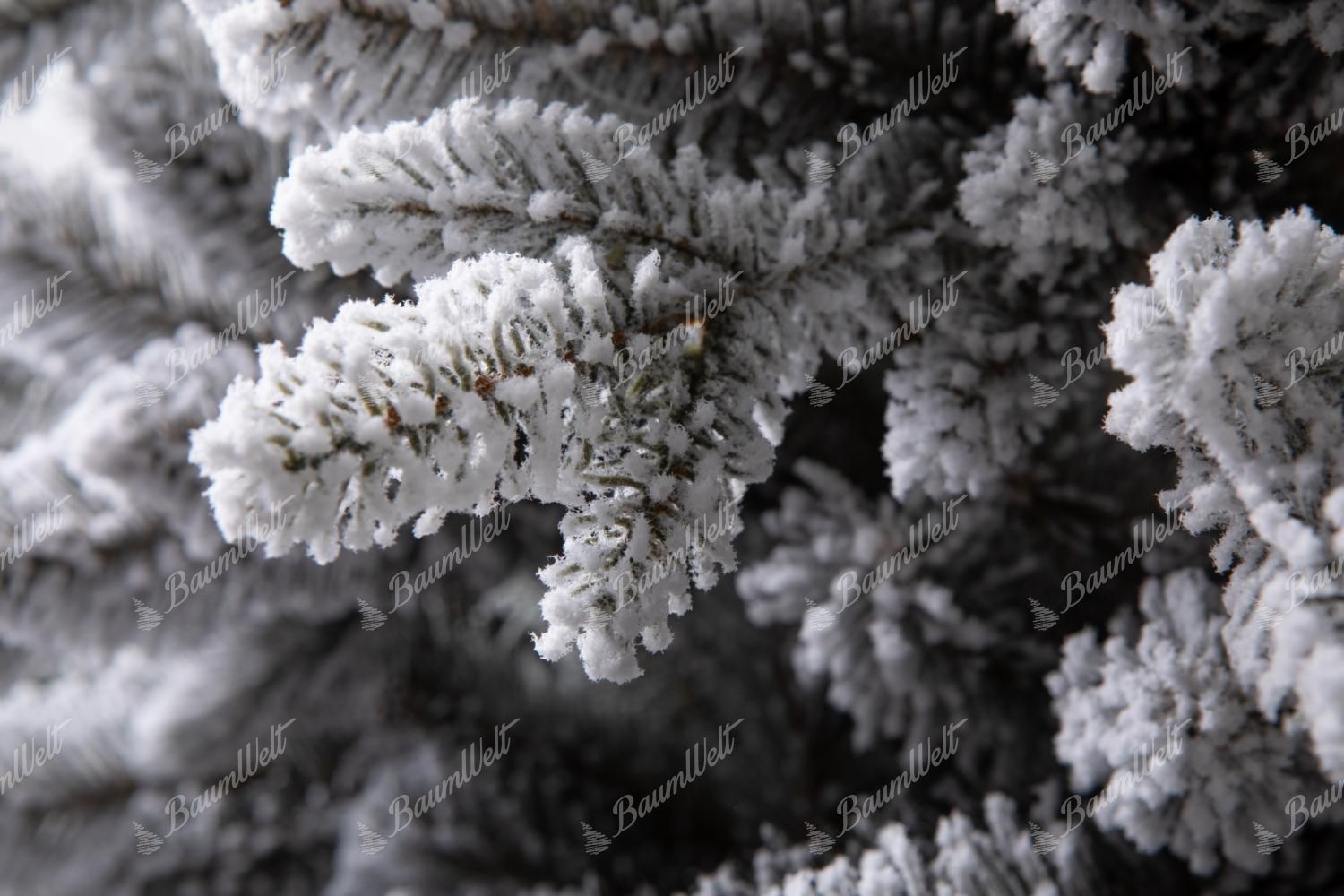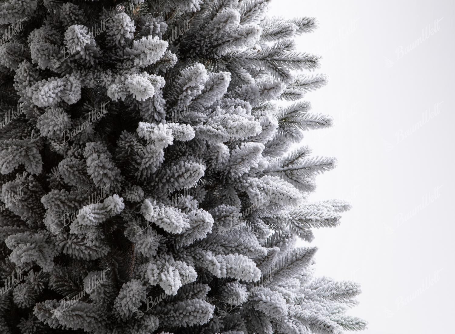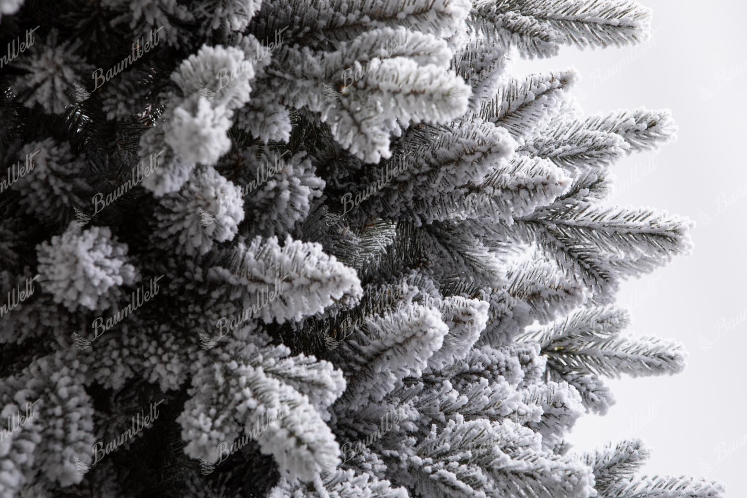 Seine weiß-grünlichen Zweige bezaubern wohl jeden, der sich nach einem eisig majestätischen Weihnachtsfest sehnt. Die 3D-Nadeln werden am gesamten Umfang des Baums durch klassische PVC-Nadeln ergänzt, die dicht zugeschneit sind. Das hochmoderne System zum Aufbringen des Kunstschnees auf den Baum sorgt dafür, dass der Schnee nicht herunterfällt.