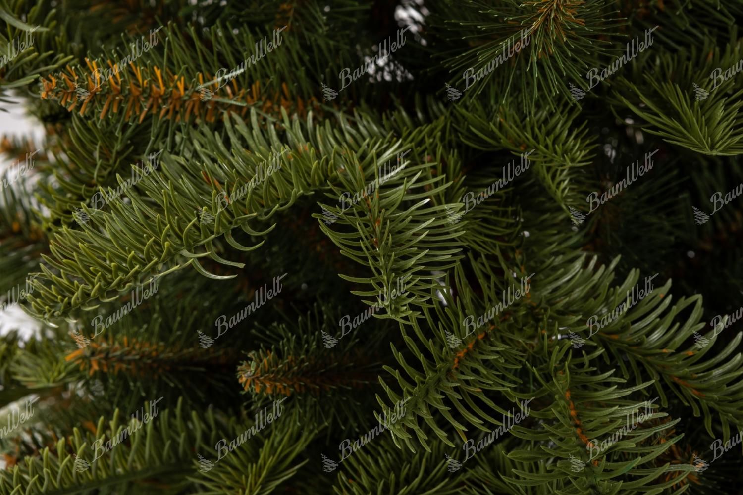 Der Weihnachtsbaum zeichnet sich durch perfekte 3D-Tannenzweige in hellem Grün aus. Die Zweige sind ungleichmäßig verteilt, um einen echten Weihnachtsbaum so gut wie möglich nachzubilden. Das Innere des Weihnachtsbaums wird durch klassische PVC-Zweige ergänzt, sodass der Baum noch dichter wirkt.