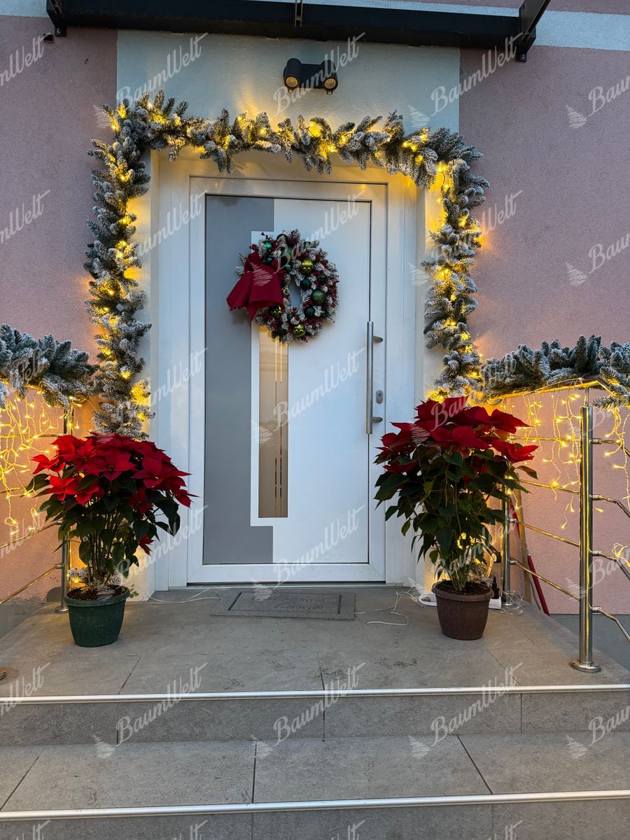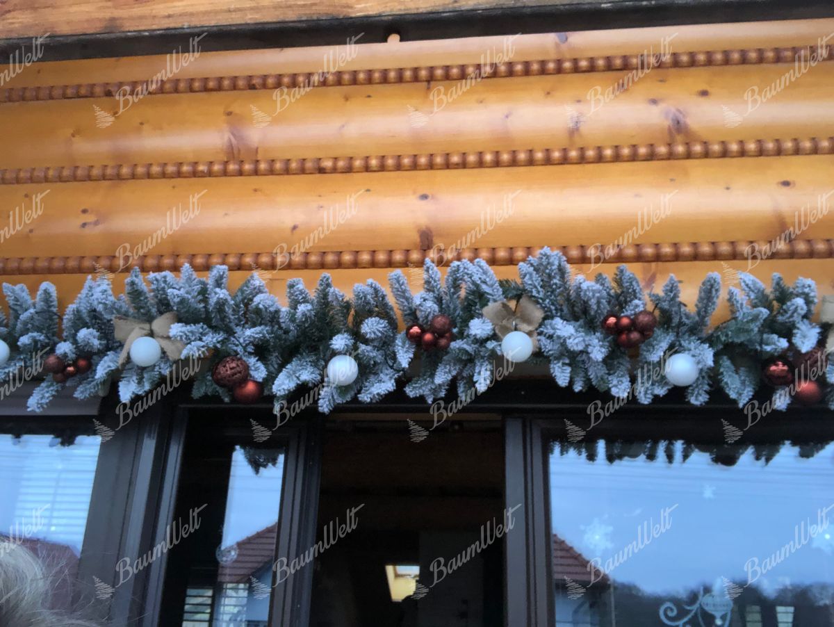 Unsere Weihnachtsgirlande mit Kunstschnee hat eine Länge von 2,7 m lang und eine Breite von 30 cm.