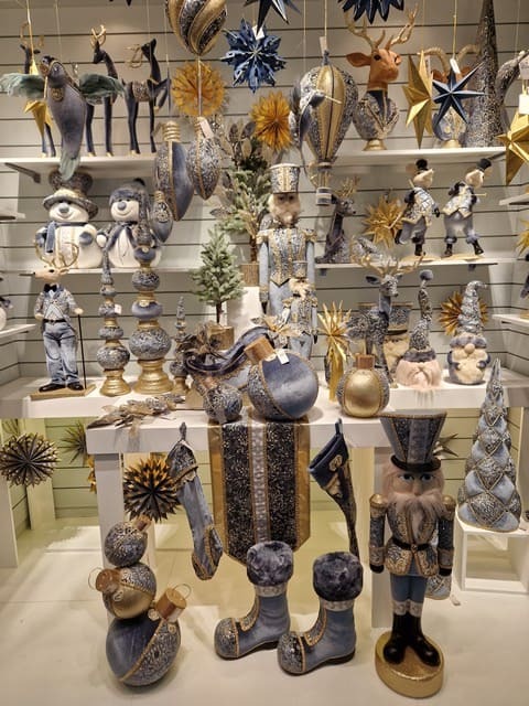 Auf der Ausstellung waren wir besonders von eleganten Weihnachtsaccessoires und -dekorationen in der Farbkombination Blau und Gold fasziniert. Wir waren nicht nur von den Weihnachtsschmuck für den Baum begeistert, sondern auch von den verschiedenen Nussknacker-, Nikolaus- und Heißluftballonfiguren. Aber urteilen Sie selbst…