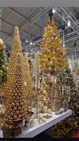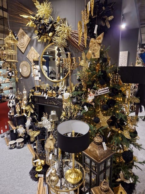 Schwarzer Weihnachtsschmuck in Kombination mit goldenem Weihnachtsschmuck wird immer beliebter und die Hersteller passen ihr Dekorationsangebot, Ornamente und Weihnachtsbäume entsprechend an. Diese luxuriöse und gleichzeitig extravagante Farbkombination drängt sich in den Vordergrund und auf der Ausstellung konnten wir sie in vielen Varianten sehen.