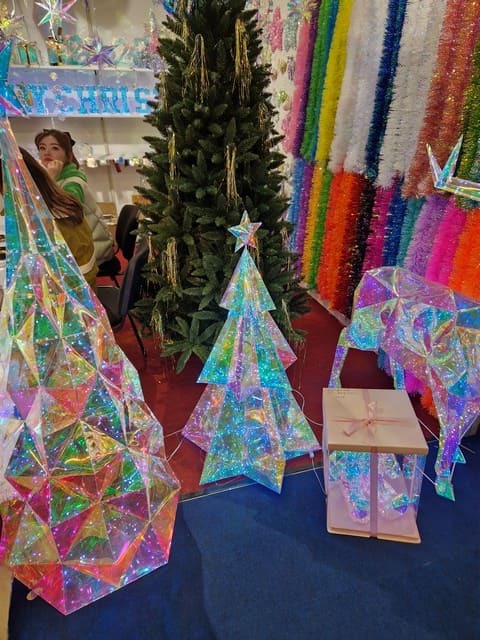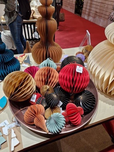 Auf der Ausstellung gab es wirklich viele Papier-Weihnachtsdekorationen und viele Hersteller haben begonnen, sich auf diese Art von umweltfreundlichen Weihnachtsdekorationen zu konzentrieren. Sie sehen wirklich luxuriös, stilvoll aus und auf den ersten Blick würde man nicht denken, dass sie aus Papier sind.