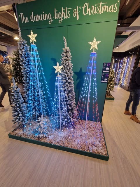 Sie müssen Ihre Weihnachtsbeleuchtung nicht nur auf Lichter für den Weihnachtsbaum beschränken. Die Ausstellung bot unzählige Lichtdekorationen in verschiedenen Farben und Formen.