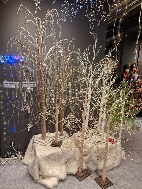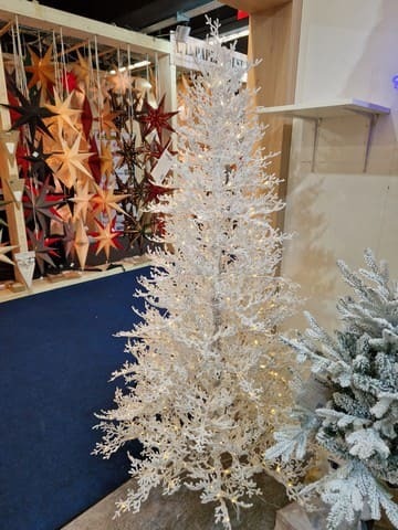 Weiße Weihnachtsbäume müssen jedoch nicht nur aus Nadeln bestehen. Die Ausstellung bot auch plastische weiße Weihnachtsbäume ohne Nadeln an, die wirklich sehr modern und stilvoll wirken. Ebenso interessant sind die weißen, beleuchteten Weihnachtsbäume ohne Nadeln, die LED-Dioden an ihren Enden haben. Weiß ist einfach immer IN.